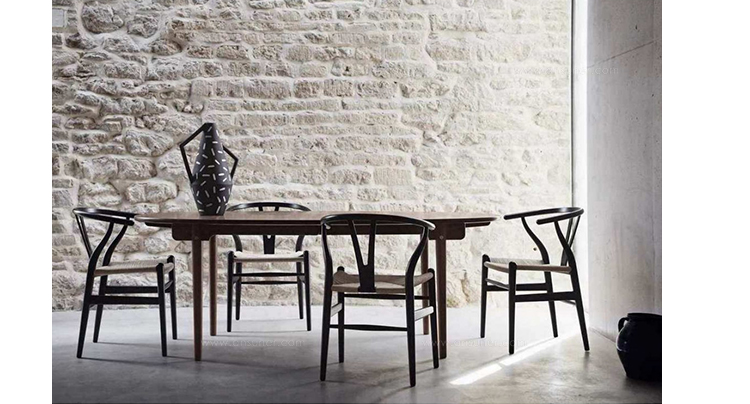 Y椅子是Hans J.Wegner最著名的作品。 它具有重量轻、有吸引力、舒适、中式风格等特点。 该款设计灵感来源于中国传统家具,四平八稳,古色古香,大气自然。上圆下方,浑然天成,深受中国顾客喜欢。Y椅关键在于是工艺与简约的设计,有着清晰的线条。 尽管椅子简约的外观要超过100个步骤进行。除其他事项外,手工编织座垫超过120米的线。 材料有丹麦硬木(橡木,榉木,水曲柳)以及北美硬木(胡桃木,樱桃木)等。外表可漆成各种各样的颜色。 垫子的座位可以添加额外的舒适。
