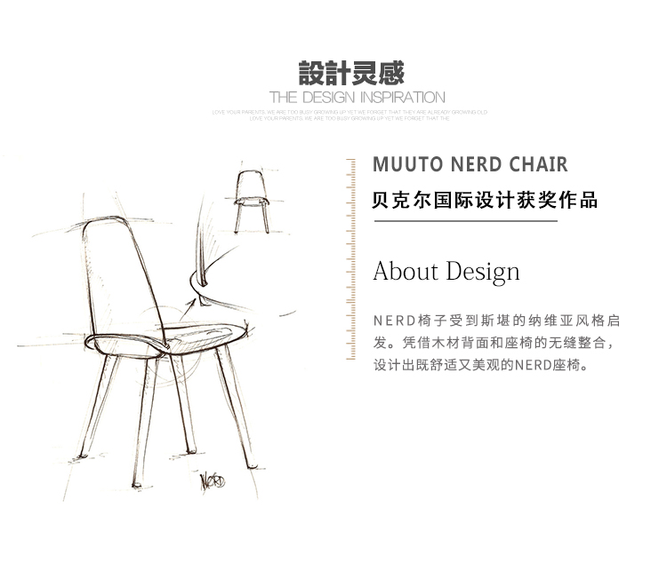 nerd chair(怪才椅)是著名设计师David Fabio设计的作品,材料和工艺有着经典的斯堪的纳维亚设计风格,通过创新集成之间座椅、靠背表达了强烈的个性。水曲柳实木框架、靠背和座板为曲木弯板。
