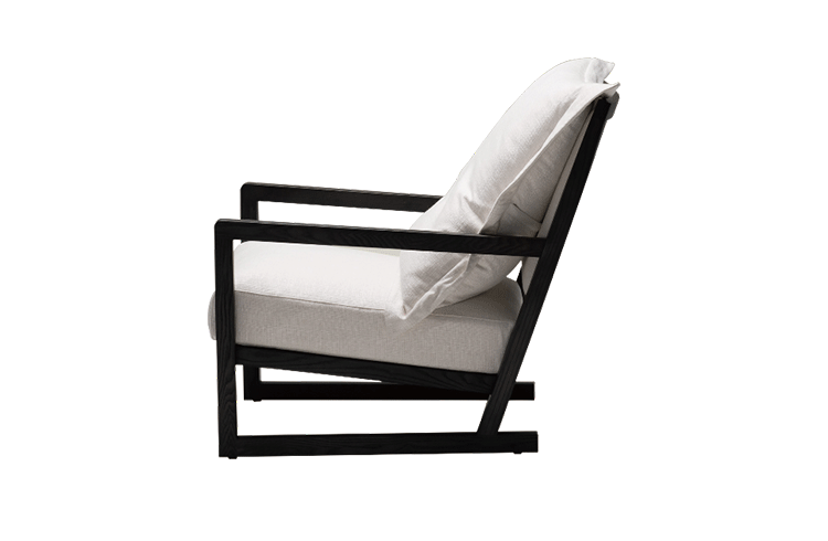 The Simon Lounge Chair features simple,clean design with a modern flourish.The solid wood frame supports a down-layered seat cushion and a loose feather down back cushion. An extremely popular lounge chair,the Simon is available in leather or fabric upholstery.Fabric covers are removable.