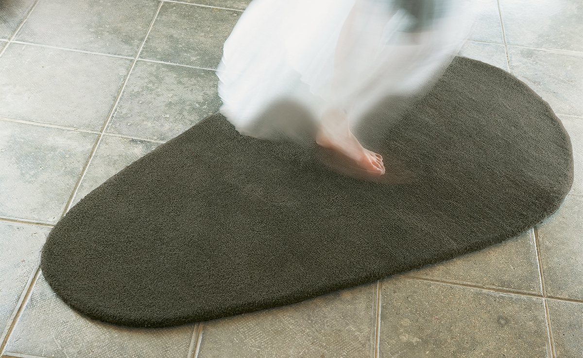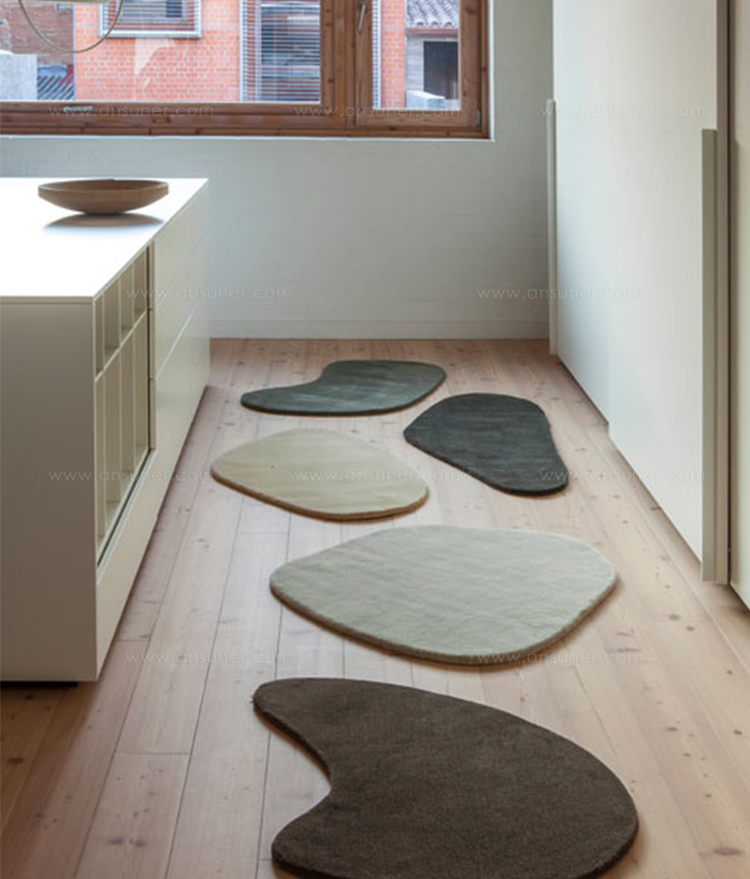 “石羊毛”系列的地毯创造了一个光滑卵石的河床,以适应长廊。不规则的轮廓和颜色为室内设计提供了无数的组合,充当了想象中的河流的垫脚石。