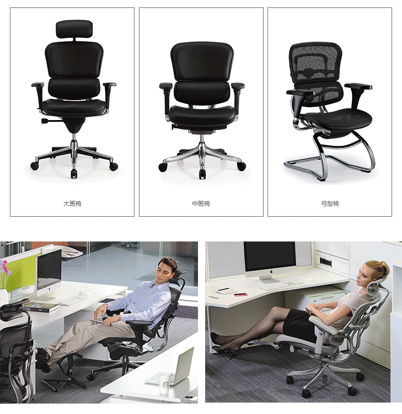 首选专业人性工学椅,保护您的腰;倍受董事长、高阶经理人青睐;商务大气,适用于会议室等商务场所;荣获众多国际影视拍摄使用;全球销量累积超过350000张。"