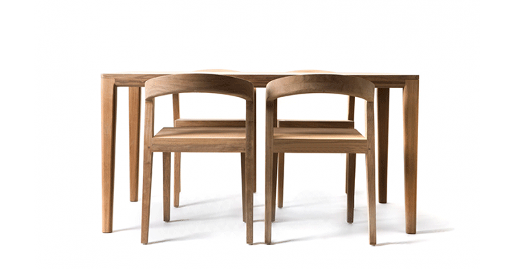 Elegant massive wooden table with an unique contemporary design,rounded edges at the table top and refined table legs.