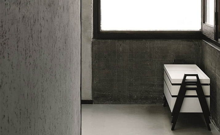 table composed of three containers of different heights in a barrel between them.legs in massello beech lacquered.plans in multilayer containers birch enamelled,set at each base.available in three variants of three colors each.