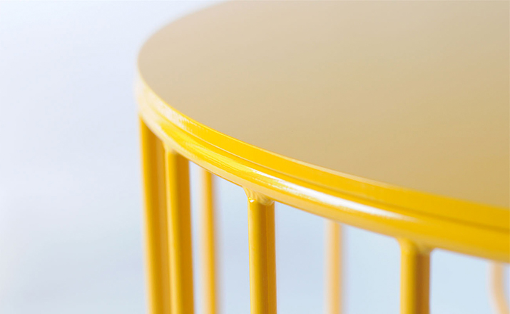 Blending sloping angles and taut lengths of bent metal are a modern interpretation of the wiry idea initially conceived by Warren Platner.The series is made up of a suite of tables,side tables and benches and fitted with luxurious solid wood,glass,or upholstered tops.By choosing the upholstered top the complement table can serve as an ottoman.