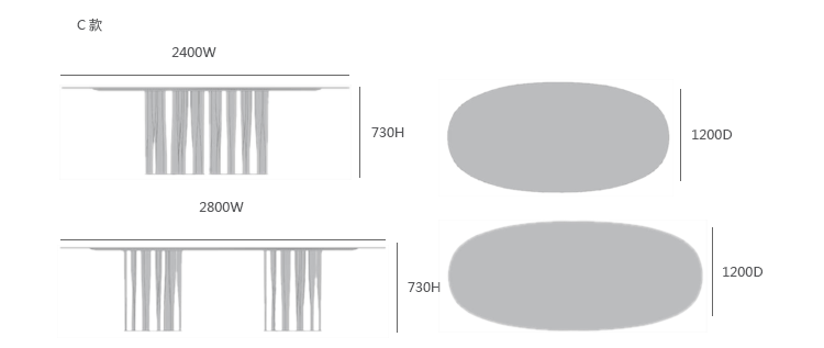 C款:2400W*1200D*730H、2800W*1200D*730H -