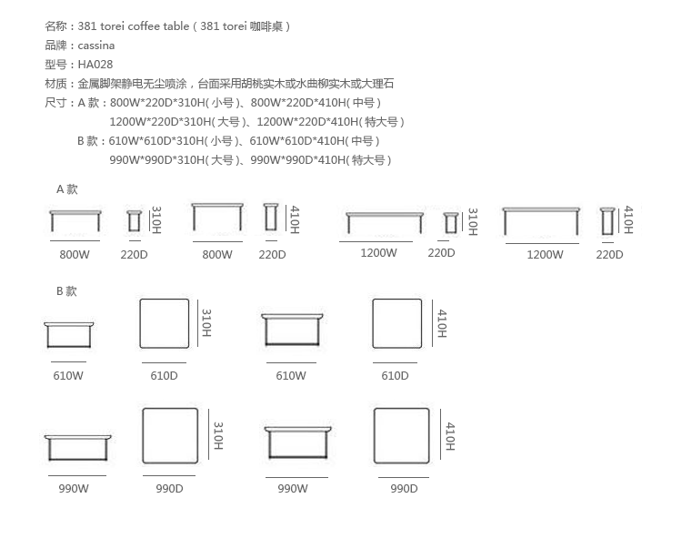 B款:610W*610D*310H