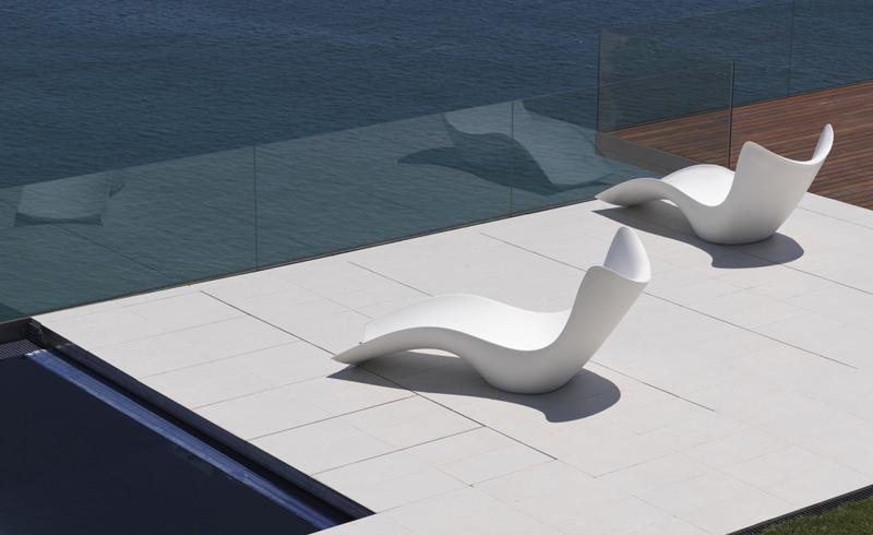 "波浪太阳椅由凯瑞德拉希德设计。它流动波浪型座位和支托,给人一种平静的感觉。运用这种柔软膨胀,流体姿态变化来改变活动的光线。设计者想要达到一种画布般的幸福感,并能唤起平静,漫不经心感觉,使人充满活力,令人耳目一新,宛若一个新的觉醒,升降全面推动力。"