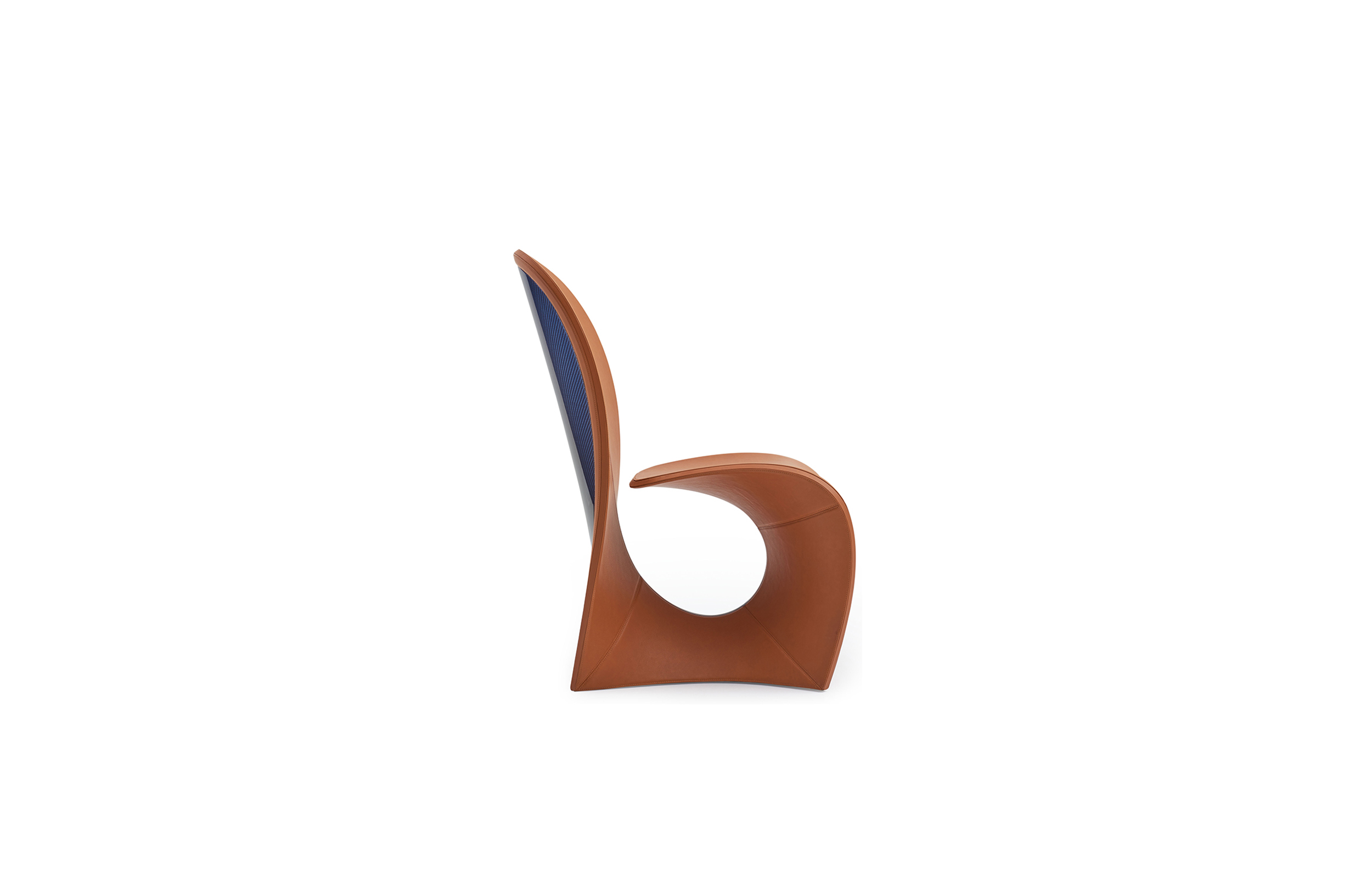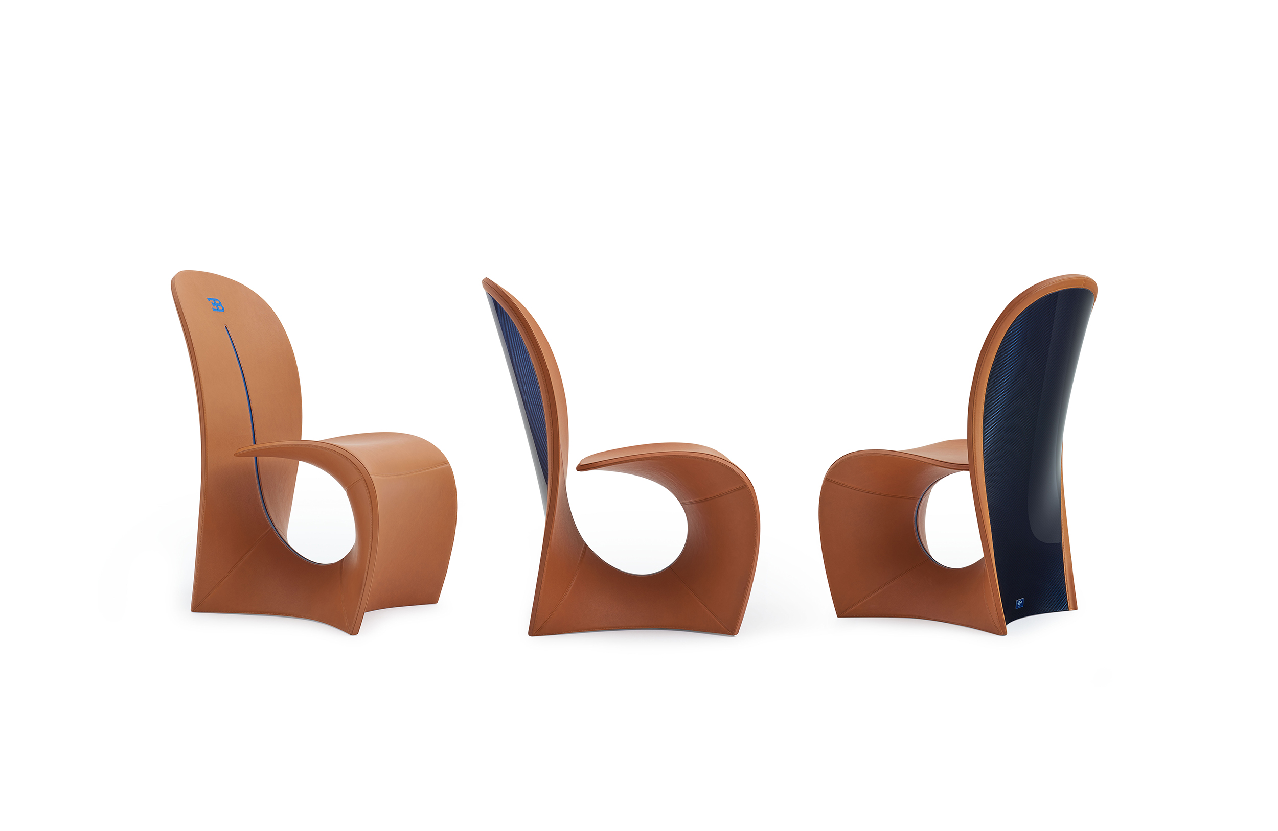 眼镜蛇座椅重现了早期的版本,它是在1902年由Carlo Bugatti设计并完成的。这把椅子是用干邑皮革制成的,有一种蓝色罗亚尔色的碳纤维框架。在蓝色皮革管道和EB字母组合中也有装饰。