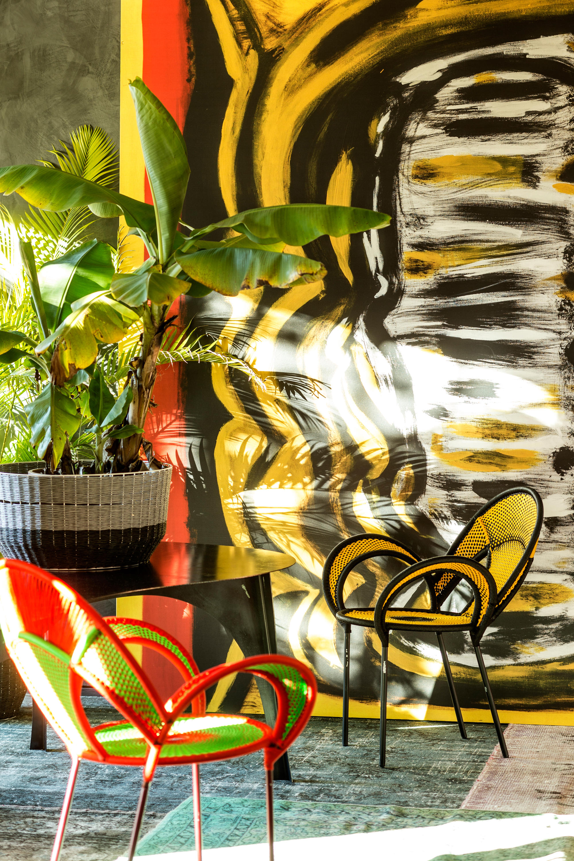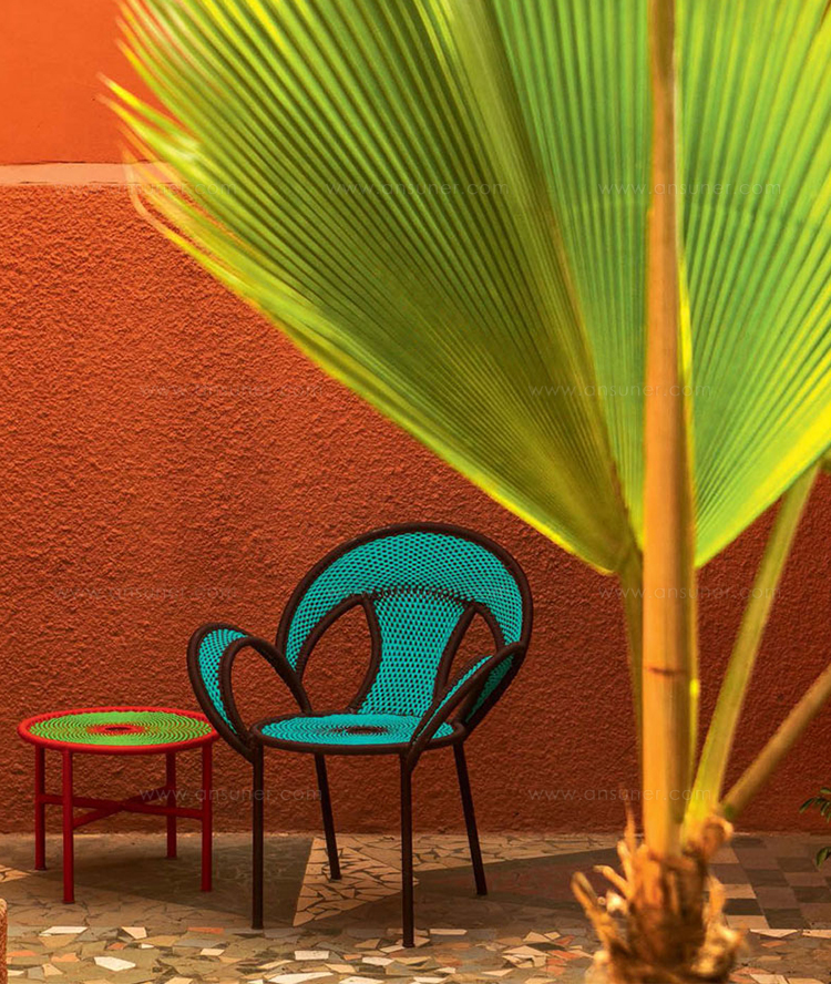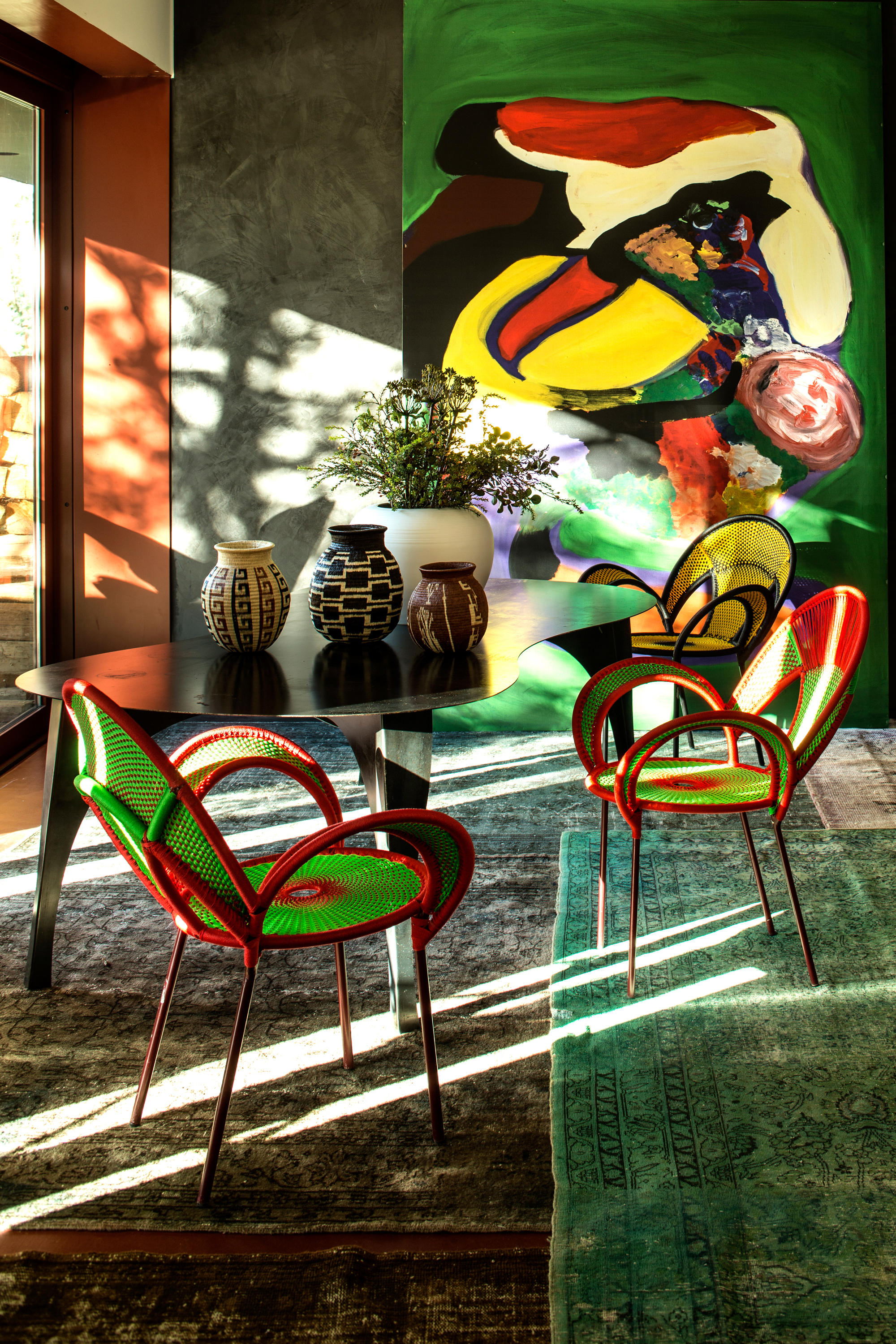 这个椅子的形状,尤其是扶手的形状设计,灵感来源于雄性鸵鸟在求偶时所跳的舞蹈,banjooli的扶手如同雄性鸵鸟伸出了翅膀,向雌性展示它们的美丽。Banjooli是M 'Afrique的一部分,由设计师设计的一系列椅子,由非洲手工编织者使用渔网的纱线生产。纯手工编织,不完美,但真实。