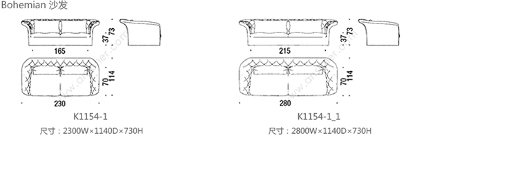 Bohemian 沙发 系列尺寸/示意图