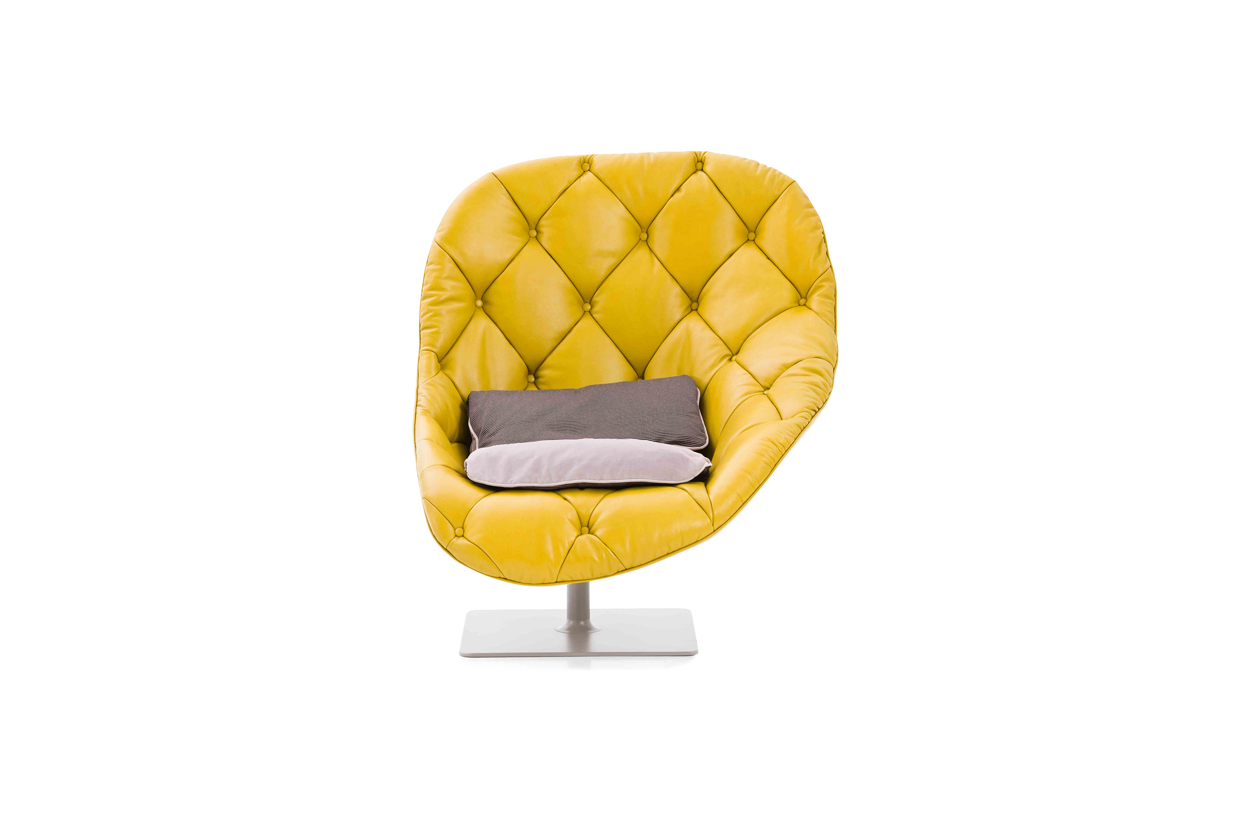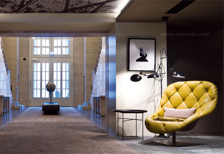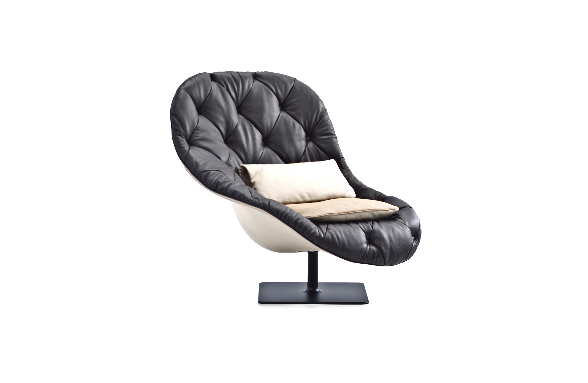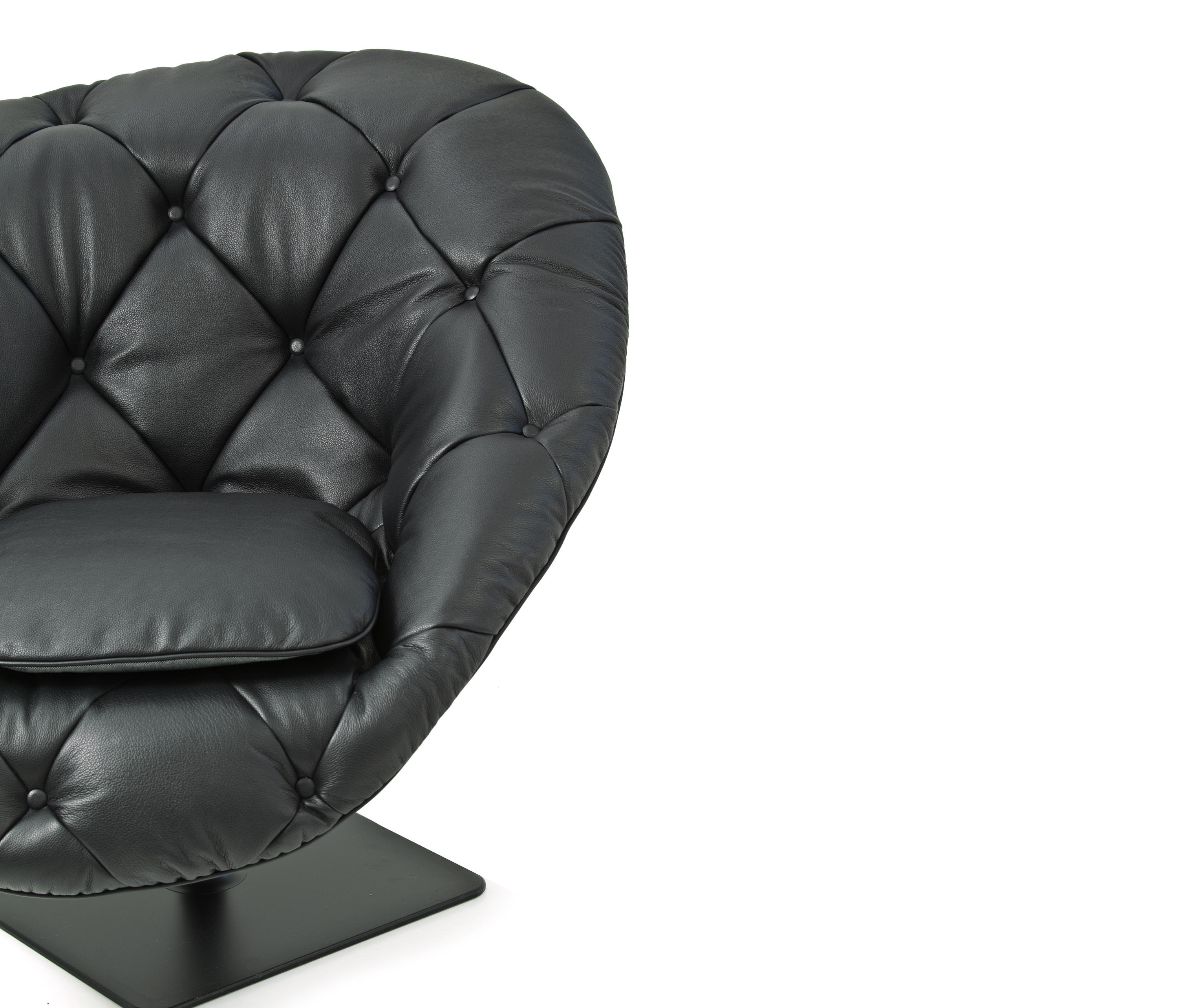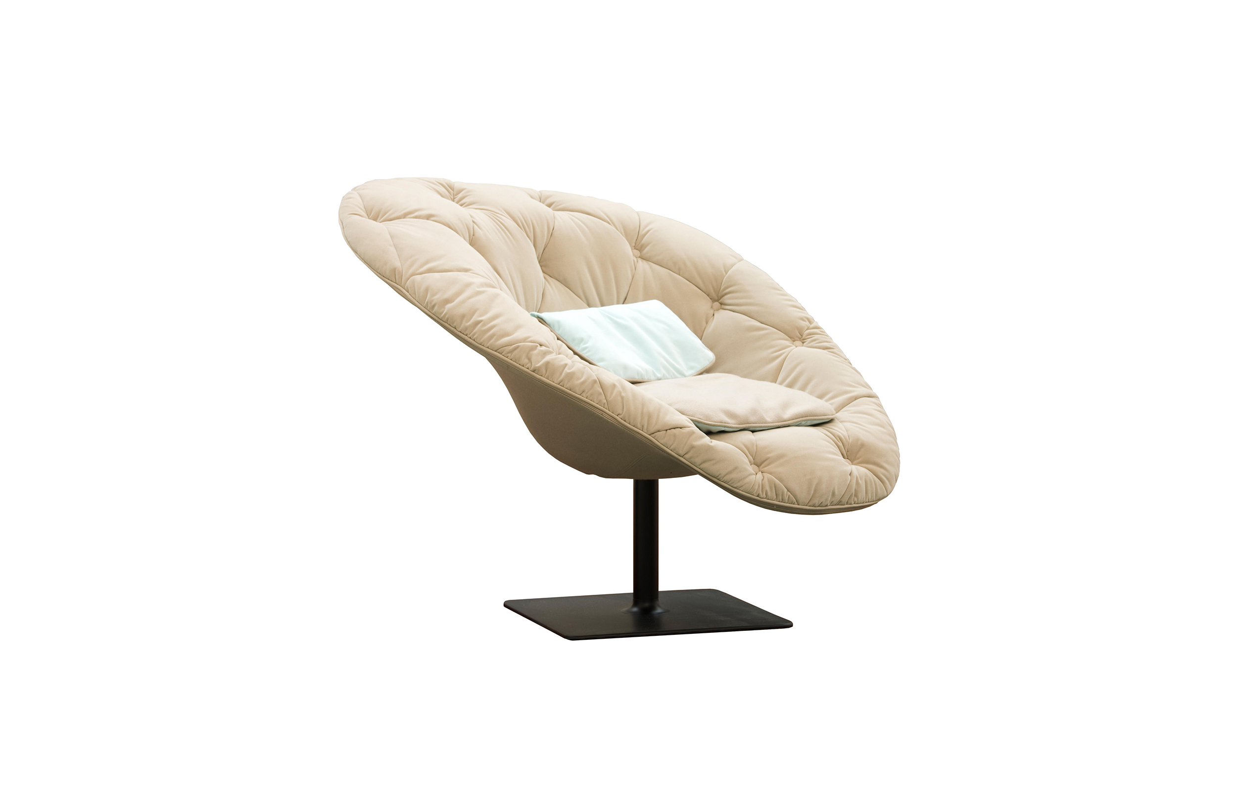 帕特丽夏·厄奎奥拉采用的是一种全新的旋转方式,革命性地改变了这一概念,她设计了一系列的产品,这些产品的形状看起来是液态的,就好像它们在框架上融化一样,以制造柔软的,舒适的,几乎随意的线条,这些布料和皮革都用按钉固定在外壳上。这些碎片似乎披着披在肩上的披巾,座椅上有各种重叠的软垫:几乎是对其覆盖层的设计、层叠的皮革和其他材料、颜色和面料类型的关注。这是一种奢侈的拼贴,当它穿过时,就会给人一种游牧式的全球精神。
