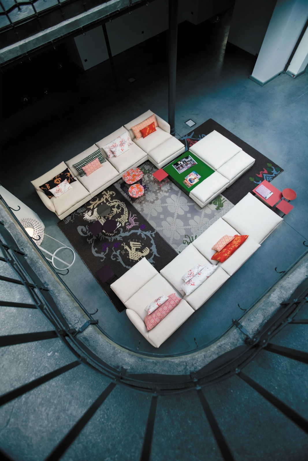精致而舒适,低调奢华,略带东方风情。在标准位置时简单、最小;当靠背有倾斜的机制时,超级舒适。彩钢或黑色的彩管腿让人联想到用来演奏米卡多(或称“上海”意大利语)的彩色木棒。舒适是一种内在的特性,它是通过在干净的、中性的色调中舒适地垫在座椅靠垫上实现的,这种色调与在梅花、翠绿、红辣椒和漆红色中所提供的洒垫和涂漆的边桌所提供的色彩形成了完美的对比。
