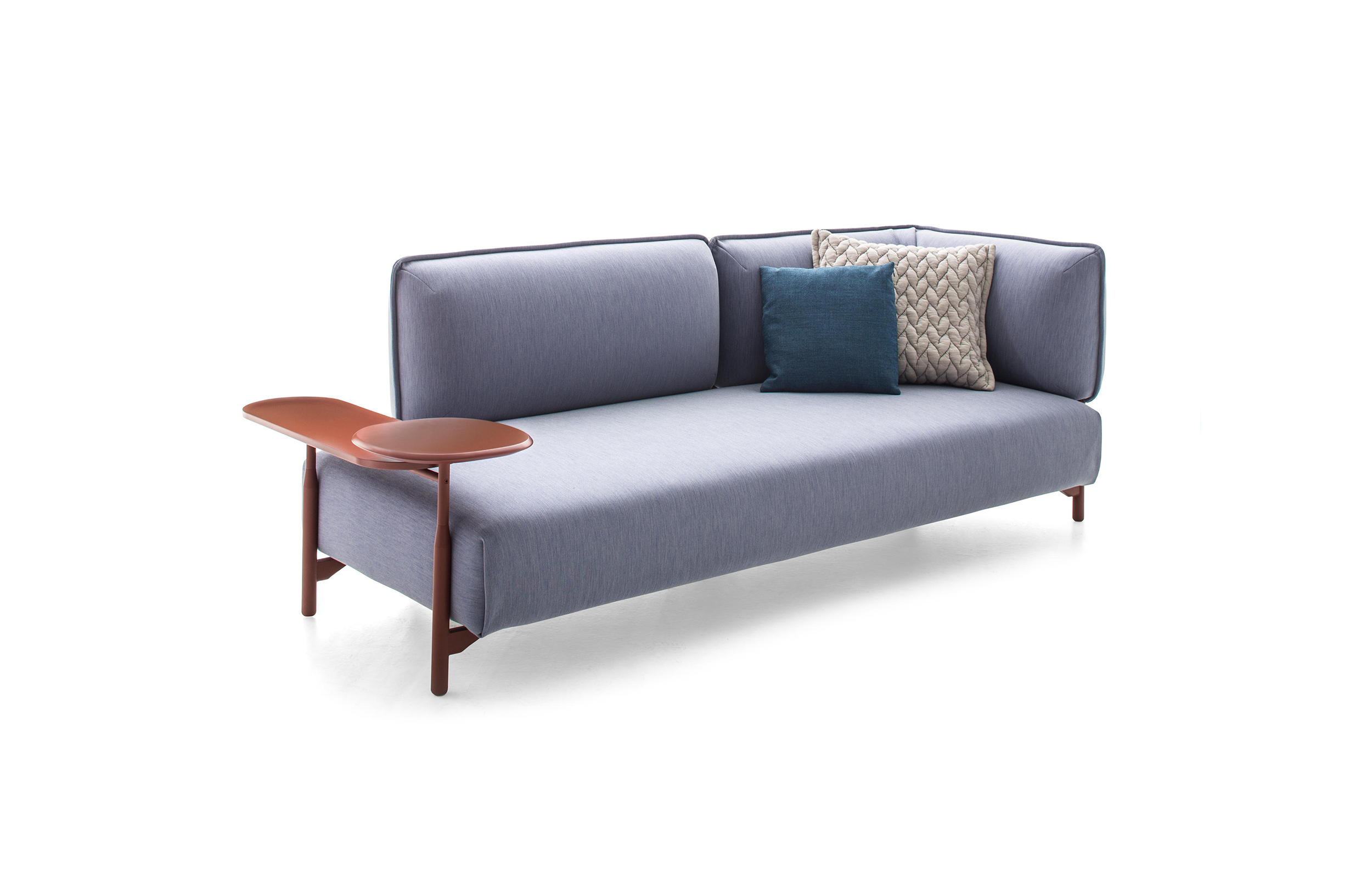 捕捉固体的轻盈,所有的柔软,并把它转换成一个设计项目。Patricia Urquiola相信她的直觉,并设计了一个新的形状和结构的模块化系统。她的技术路线是一个铝制的框架,圆圆的木腿,充足的靠垫,桌子和水平的表面。只是一些容易组装的可互换零件。结果让人惊讶,迷惑了感官。这些模块的充分性与这些平台的轻盈形成了对比,这些平台看起来可以对抗重力,就像悬吊在地板上的假想结构一样。看起来与框架没有什么关系的腿实际上是可以固定在它上面的柱子,并组合成多个组合。