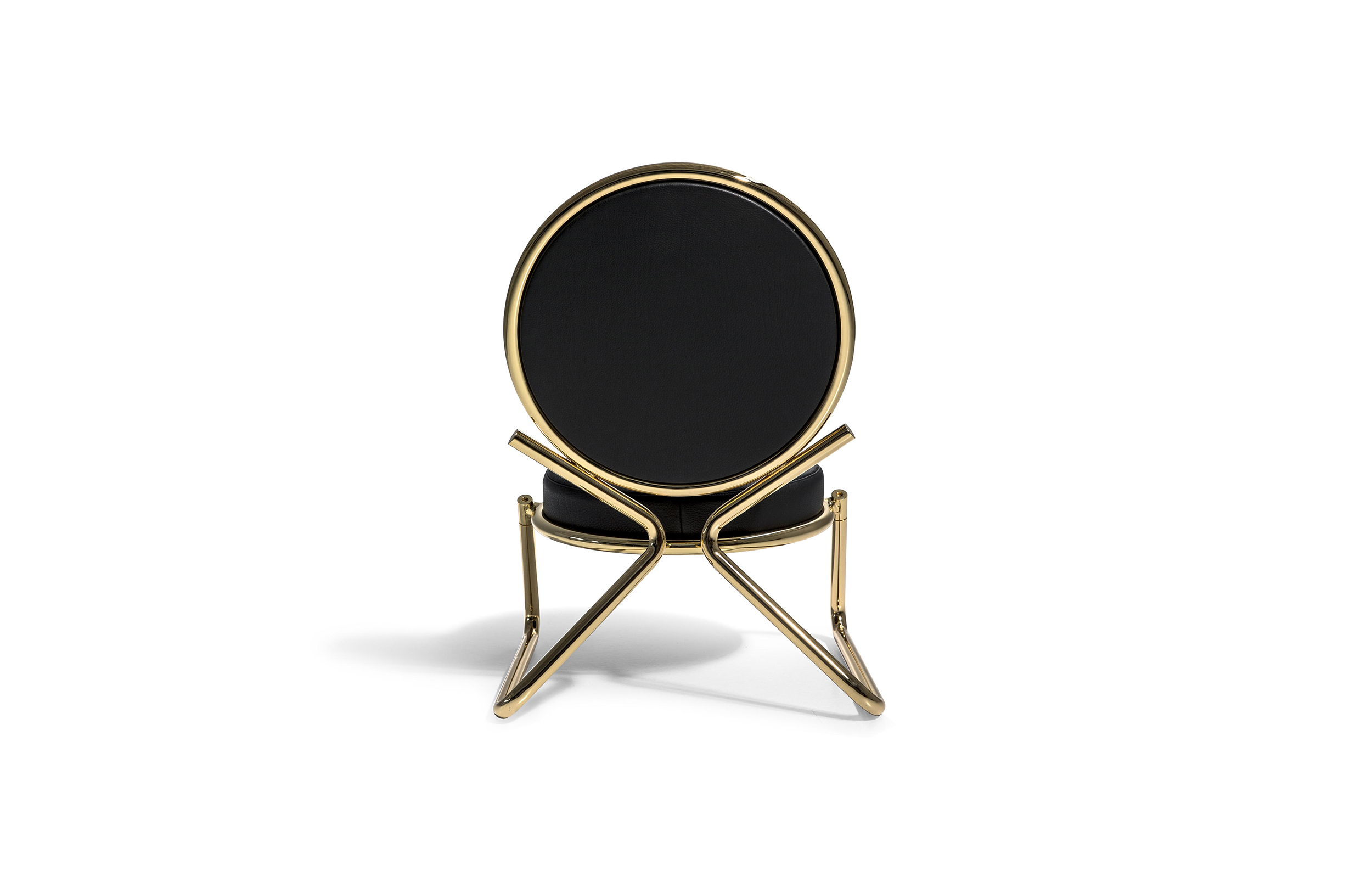 两个圆圈,两个基本模块接枝到本领域的结构几何结构中,去除了灵感,公开地传达了最大限度简化的趋势。这是高品质工业生产的前奏,这是一种优雅的经济,由镀铬钢框架提供的可能性表达,将设计结构设计成一个完整的座位家庭。这样,一把椅子和一把凳子就诞生了,没有扶手,加上一个小小的双座沙发,这是一种精致的正式进化,由良好的品味和阶级所决定。这是一种回归秩序,向一种同时奢华和合成的语言过渡。