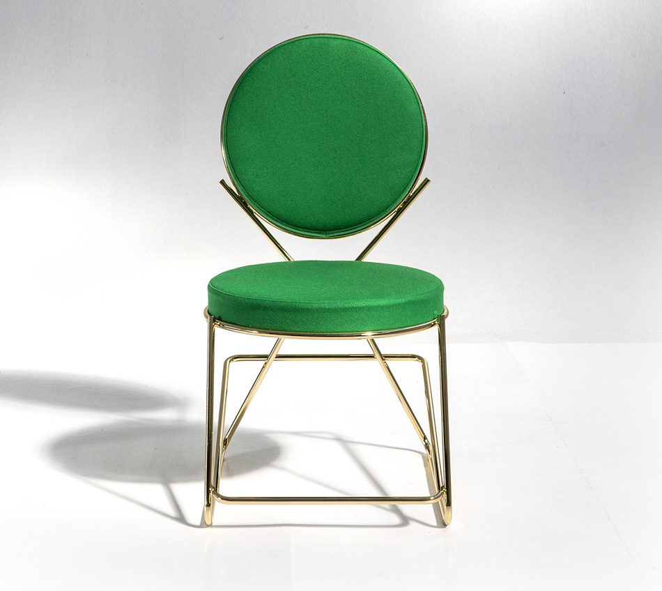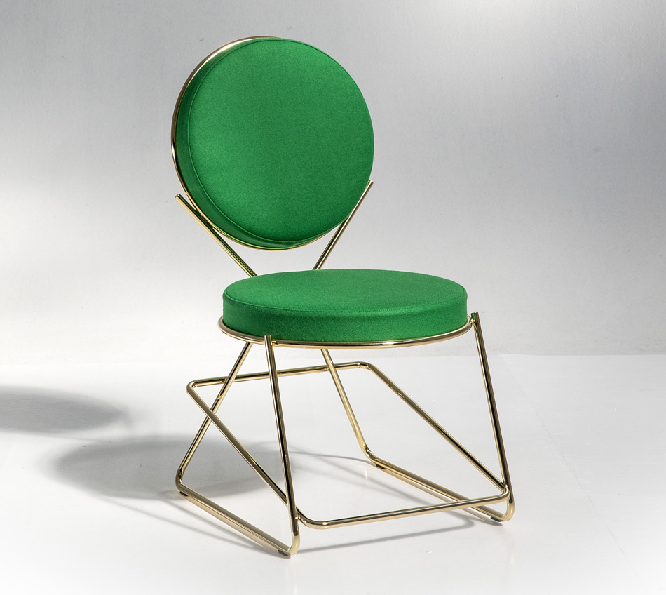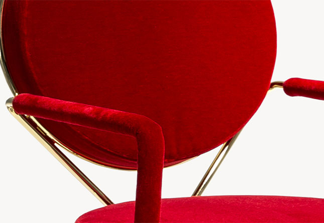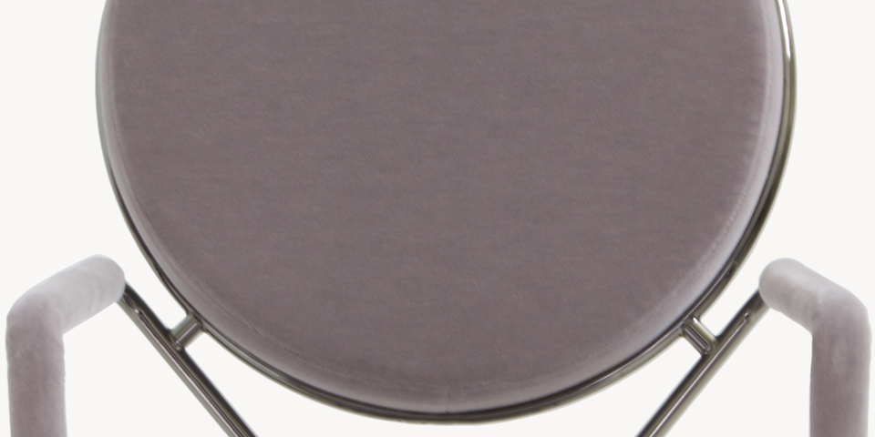两个圆圈,两个基本模块接枝到本领域的结构几何结构中,去除了灵感,公开地传达了最大限度简化的趋势。这是高品质工业生产的前奏,这是一种优雅的经济,由镀铬钢框架提供的可能性表达,将设计结构设计成一个完整的座位家庭。这样,一把椅子和一把凳子就诞生了,没有扶手,加上一个小小的双座沙发,这是一种精致的正式进化,由良好的品味和阶级所决定。这是一种回归秩序,向一种同时奢华和合成的语言过渡。