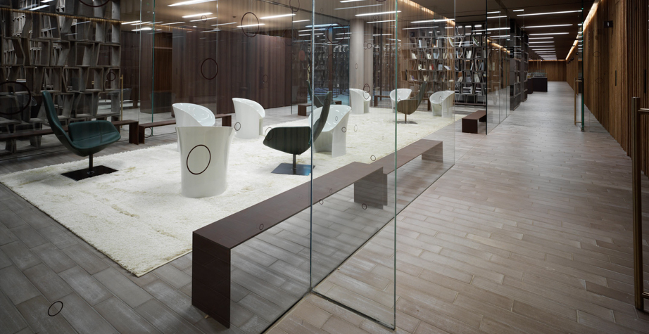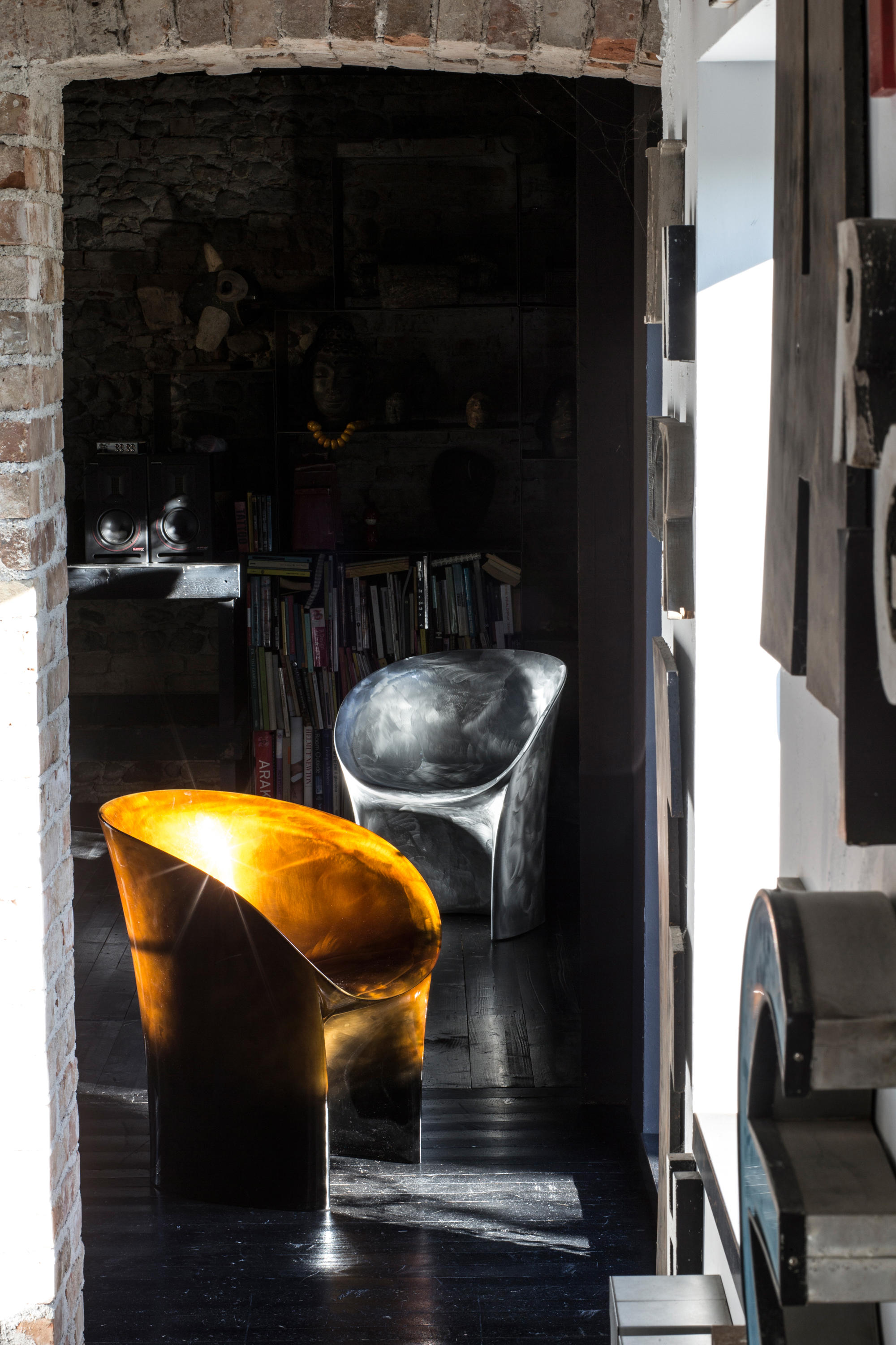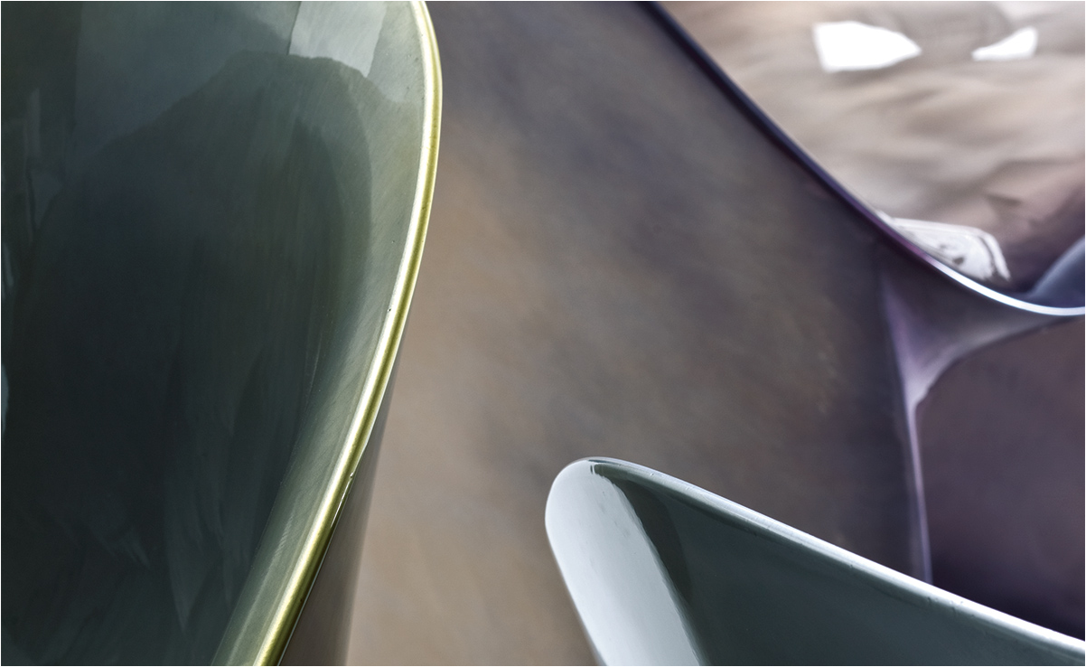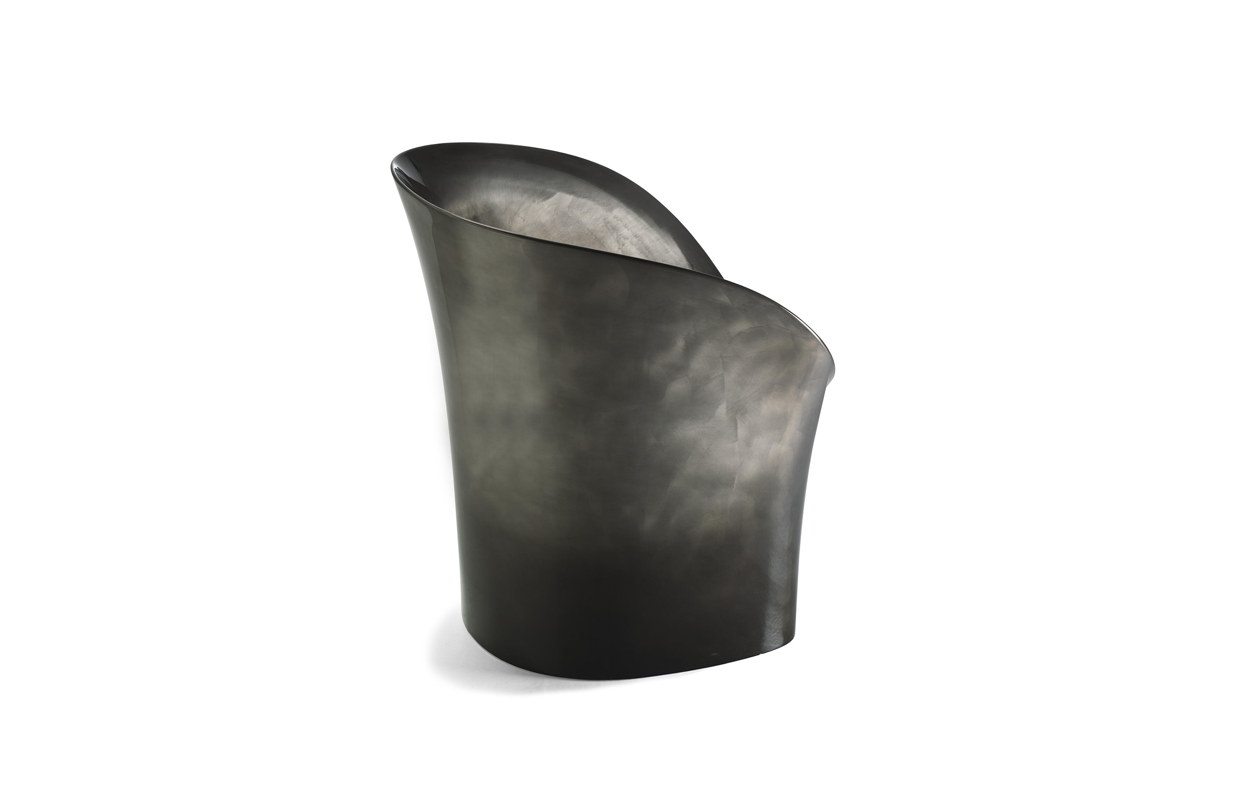 空隙和空间在完美的形式和谐中移动。移动的,流动的线条给椅子的轮廓似乎是转瞬即逝而不是固体,吸收和扩散一个微弱的,精致的辉光。在月球上,大小是一种错觉。从侧面看,座椅的曲线与底座的圆柱形结合在一起,让人联想起盛开的花朵,在这种严格的几何秩序下对有机的让步。从前面看,当光线出现和消失时,座位上的光芒就会散发出迷人的魔力。这种形式如此新颖的原因是来自不同层面的回响。它是一种新的三维形式,它加强了作品的时尚线条和月亮般的质感,这种质感源自于实体与消逝的相互作用。