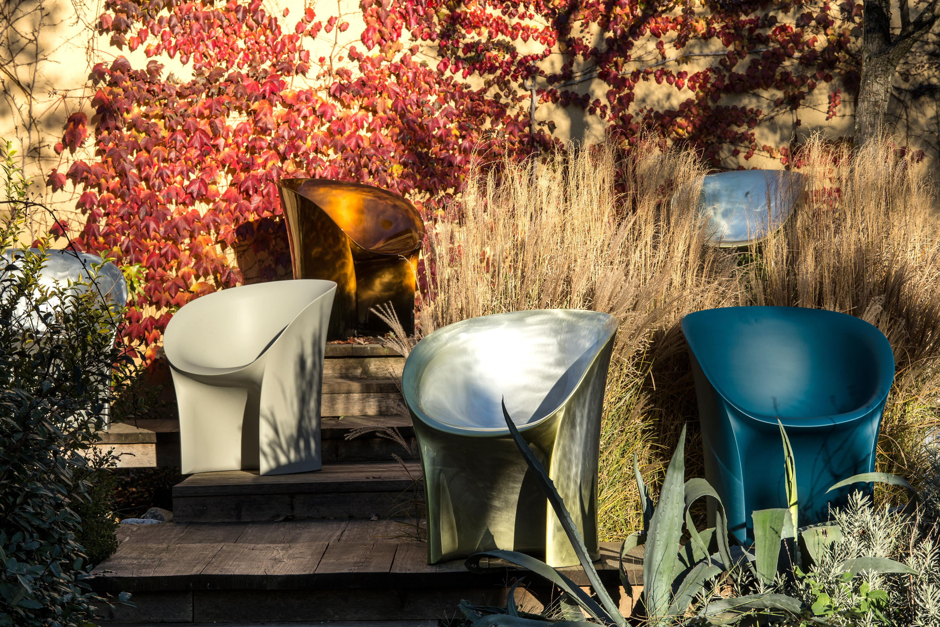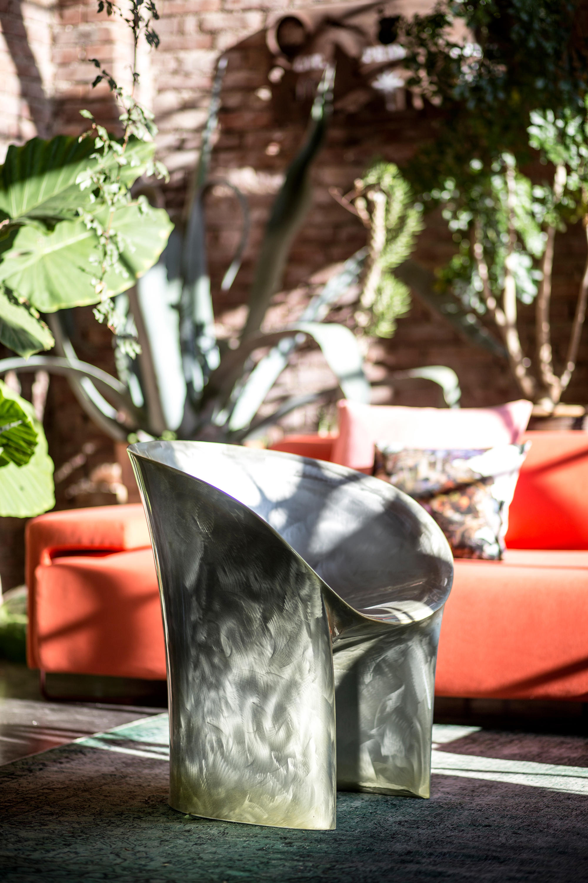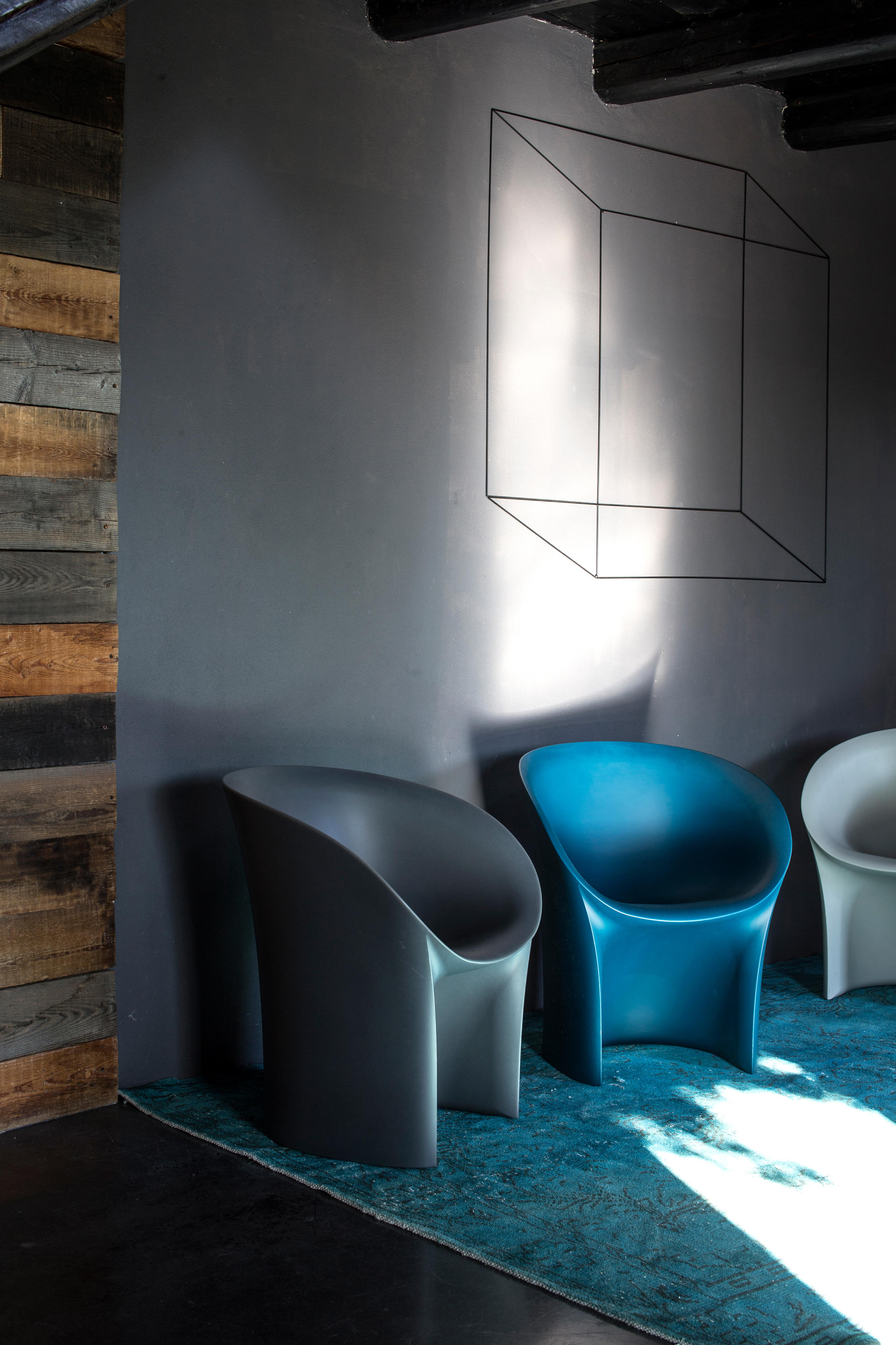 空隙和空间在完美的形式和谐中移动。移动的,流动的线条给椅子的轮廓似乎是转瞬即逝而不是固体,吸收和扩散一个微弱的,精致的辉光。在月球上,大小是一种错觉。从侧面看,座椅的曲线与底座的圆柱形结合在一起,让人联想起盛开的花朵,在这种严格的几何秩序下对有机的让步。从前面看,当光线出现和消失时,座位上的光芒就会散发出迷人的魔力。这种形式如此新颖的原因是来自不同层面的回响。它是一种新的三维形式,它加强了作品的时尚线条和月亮般的质感,这种质感源自于实体与消逝的相互作用。