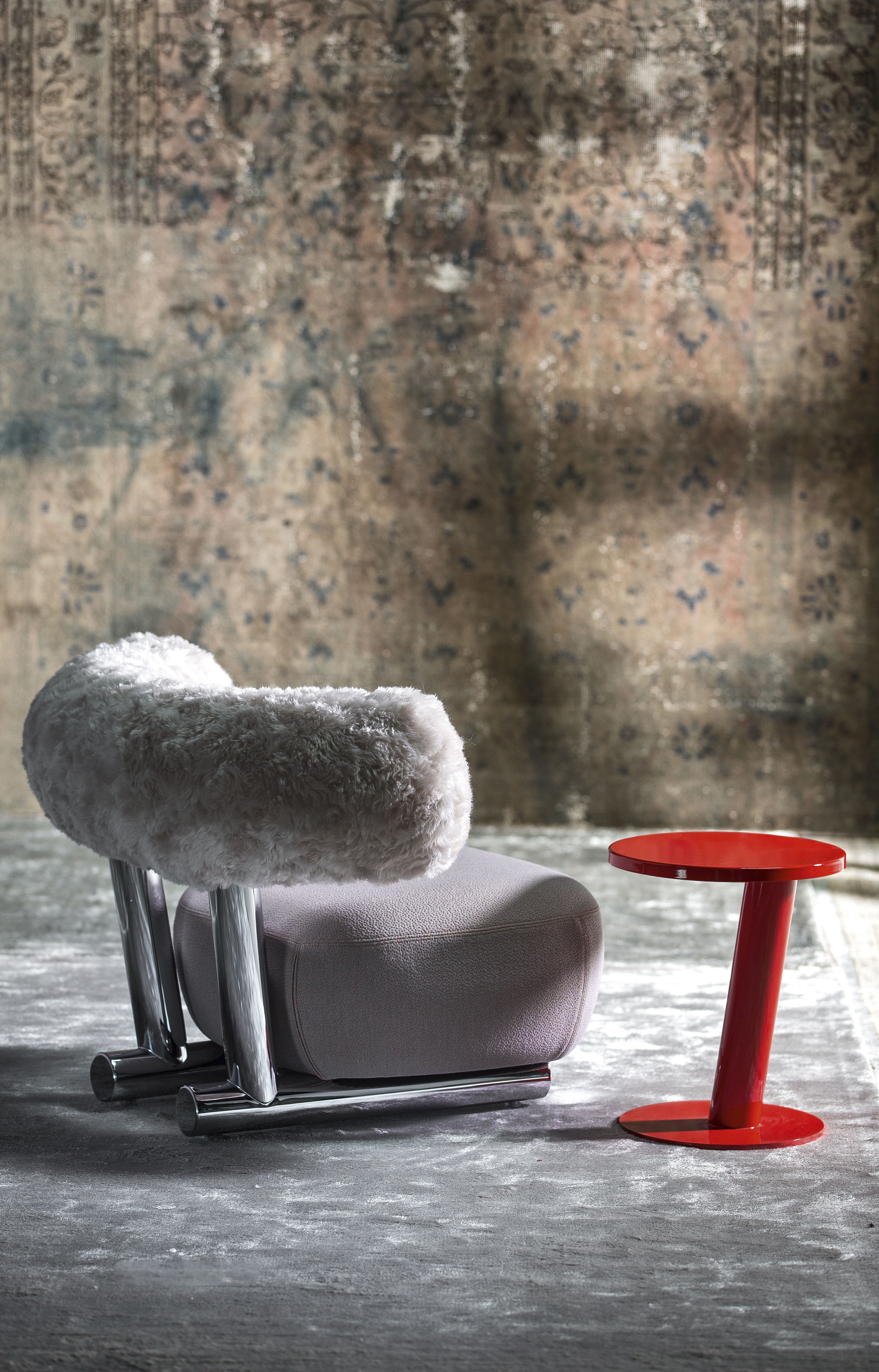 把粗糙放置在精致上面,选择一个与趋势相反的选择,而不是最常见的研究苗条的形式。尽管如此,保持轻盈,空灵。因此,设计是围绕着超大号的最让人放心的方面:简单性。这个极简和坚固的结构是用一个直径80毫米的粉彩铝管建造的。其上有一个带有圆形体形的座垫,这是一个关于充气模块的构思的隐蔽暗示。背面,就像一个大胆的圆括号,承诺给人安慰。它的效果,以及自然的吸引力,都是令人愉悦的圆润,随意而轻的。