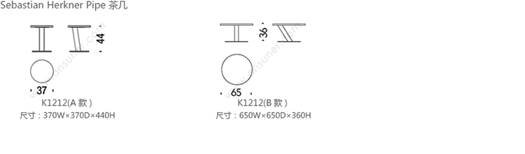 Sebastian Herkner Pipe 茶几 系列尺寸/示意图