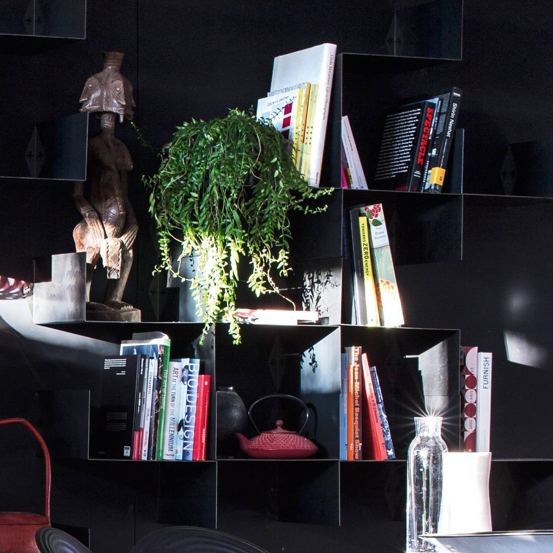 一种切割的金属薄片,裸露的,没有装饰的。它在构图上,在结合的自由中,把自己区分开来。最终形成一个不完整的格栅,通过切割来分解。这是一个金属工人认真工作,是一种机械加工的残留物,它是一个在残酷的美学和诗歌之间的废弃行业的快照。Z-shelf,连同3个修女凳子和滑翔机沙发,都是Americana的一部分,这是一个异构的收藏,通过使用钢铁来庆祝概念性的作品,作为设计实践的一种表现,同时拒绝既定的惯例和标签。