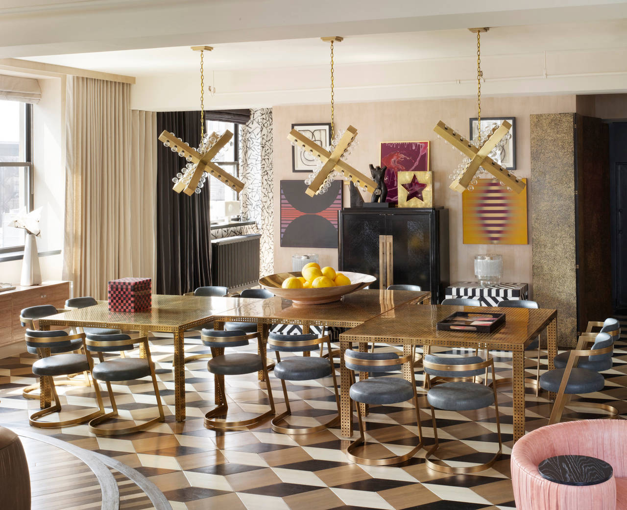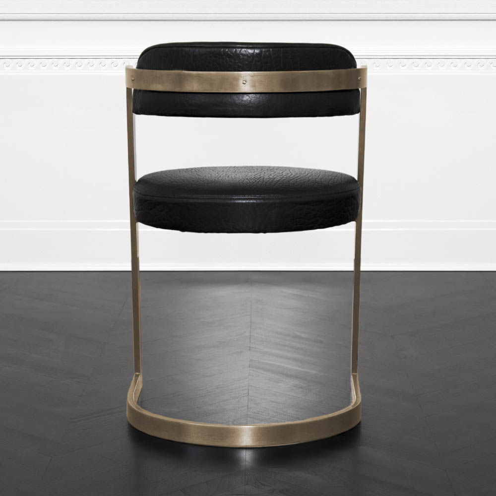 时尚的Studio Chair曲线和边缘融合了黄铜和皮革,营造出与众不同的优雅风格。 凭借其非传统,大胆的形式和标志性的材料组合,椅子从各个角度都是美丽的,非常适合作为临时的桌子,或餐椅。