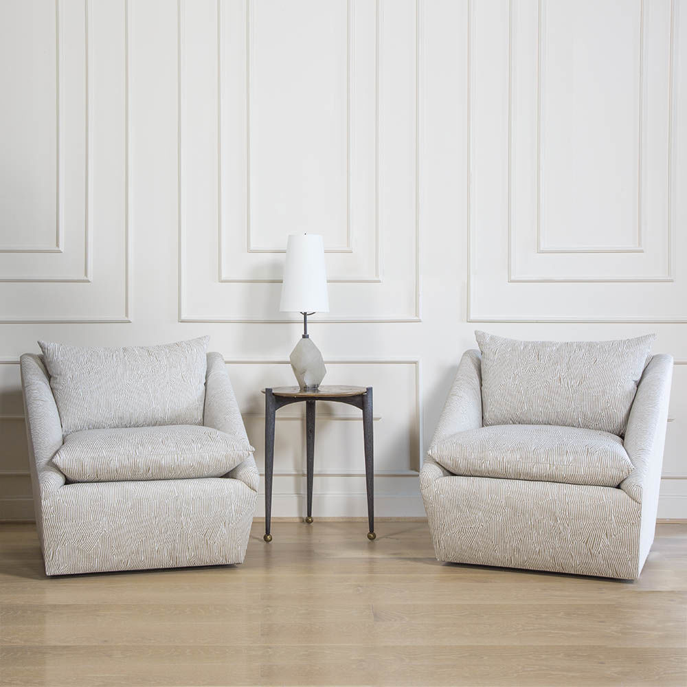 时尚的棱角线条,完全铰接的旋转底座,宽松的刀口,座椅和靠背垫,定义了Harper Swivel Chair。 垫子采用10/90混合鸭绒和羽毛,极致舒适。 采用8向手动弹簧,我们的工程硬木框架依靠榫卯细木工,为质量和工艺设定了标准。 提供精选的面料和皮革选择。
