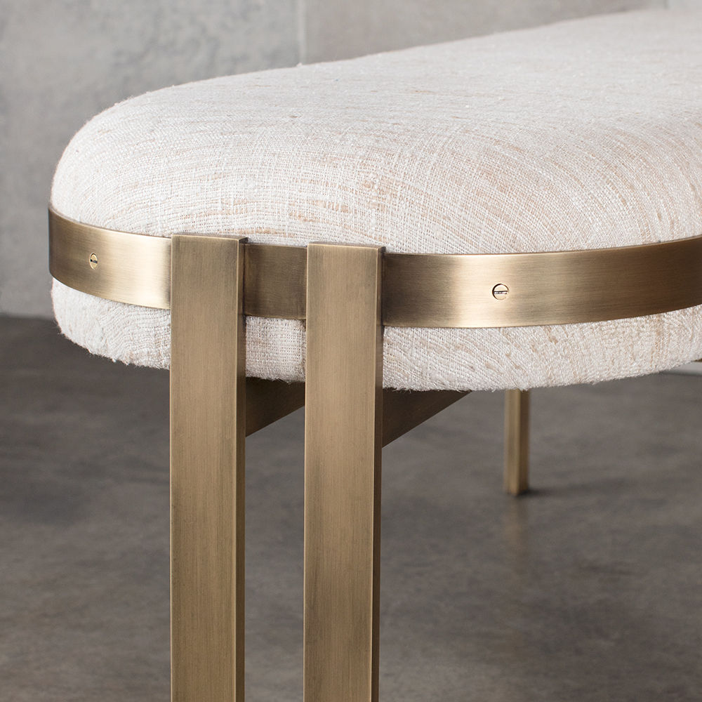 标志性的Elliot长凳结合了简洁的线条和经典的白话。 这款软垫长凳采用成对的黄铜棒料腿,饰有抛光黄铜或油擦黄铜饰面。 座椅有各种精选面料和皮革可供选择。