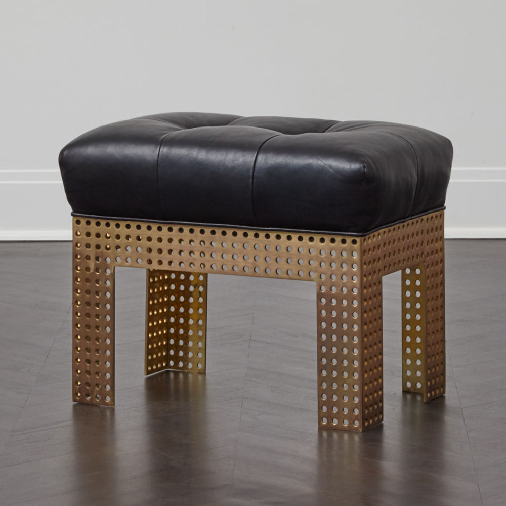 来自我们的标志性精密系列的未经剔除的抛光青铜搭配奢华的皮革内饰,营造出性感的现代经典。 穿孔细节赋予这件作品独特的优雅,使其成为完美的重点长凳或脚凳。精密脚凳框架由天然青铜制,可以用各种不同的皮革或面料装饰。