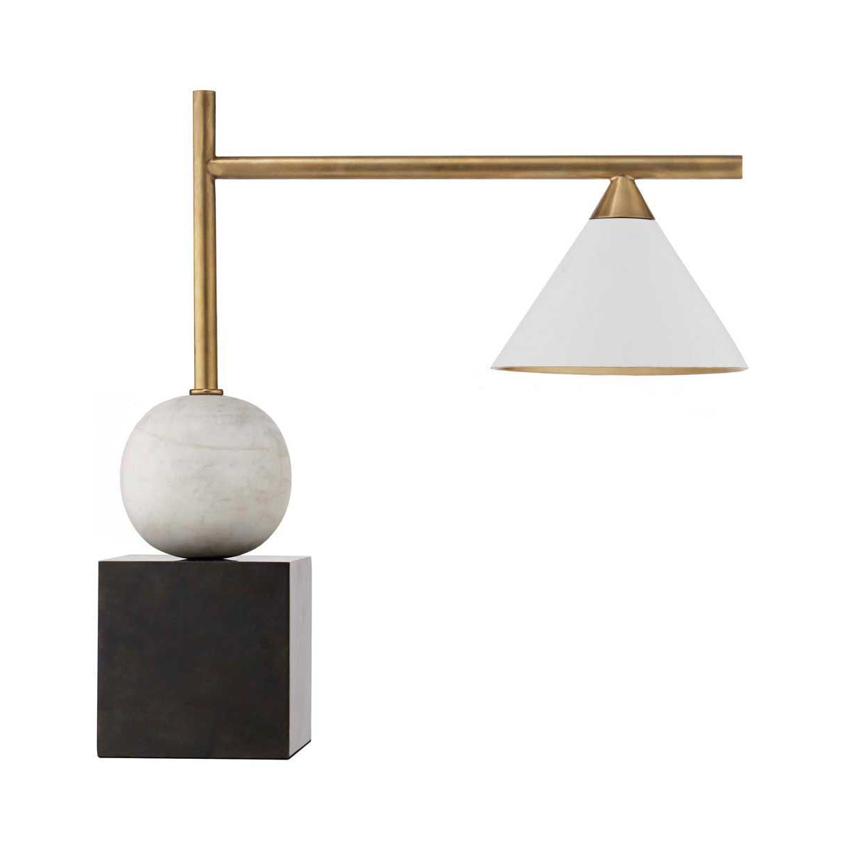 混合金属和几何形状的戏剧性和建筑用途,这款精致大胆的灯将有机女性曲线与时尚阳刚的精确度并置在一起。 其独特的声音充满了现代的精致和灵魂。 有青铜和古董抛光黄铜,古董白色灯罩和古董黑色灯罩。