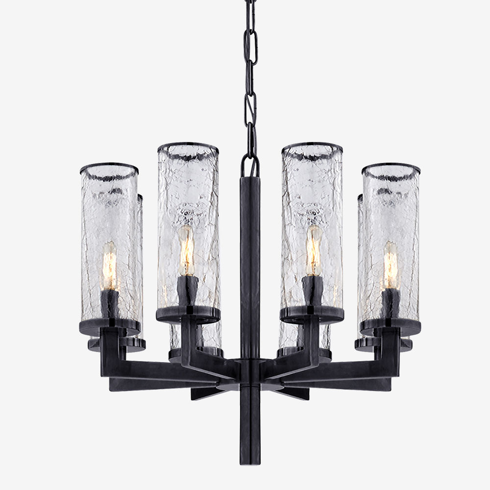 这款现代主义灯具采用凯利的标志性碎裂玻璃技术,引领她对重复、活泼和雕塑形式的热爱。 天然青铜和铸造纹理玻璃赋予这些设计灵魂的建筑和经典的区别。 采用古董抛光黄铜,青铜和抛光镍与裂纹玻璃。
