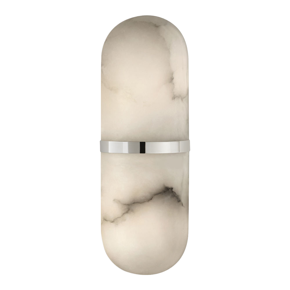 Melange壁灯采用流线型几何形状,轻松搭配天然雪花石膏和时尚金属细节,散发出现代气息,同时强调天然石材的美感。 这款壁灯采用手工雕刻的天然雪花石膏,配以古董黄铜,青铜或抛光镍细节,适合潮湿环境。