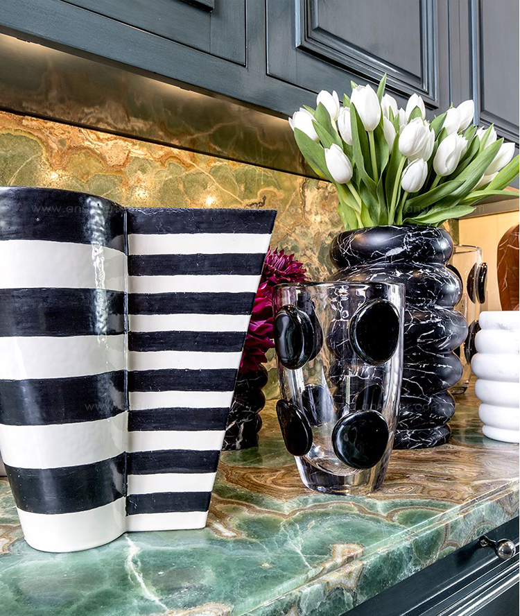 Encircle花瓶由墨西哥城的手工吹制透明水晶制成,由工匠玻璃鼓风机制成。 每个花瓶都有一系列圆形石墨黑色玻璃坯料。 玻璃的厚度及其有机形状赋予该作品显着的视觉重量。 Encircle花瓶非常适合插花或作为独立装饰。
