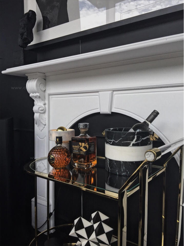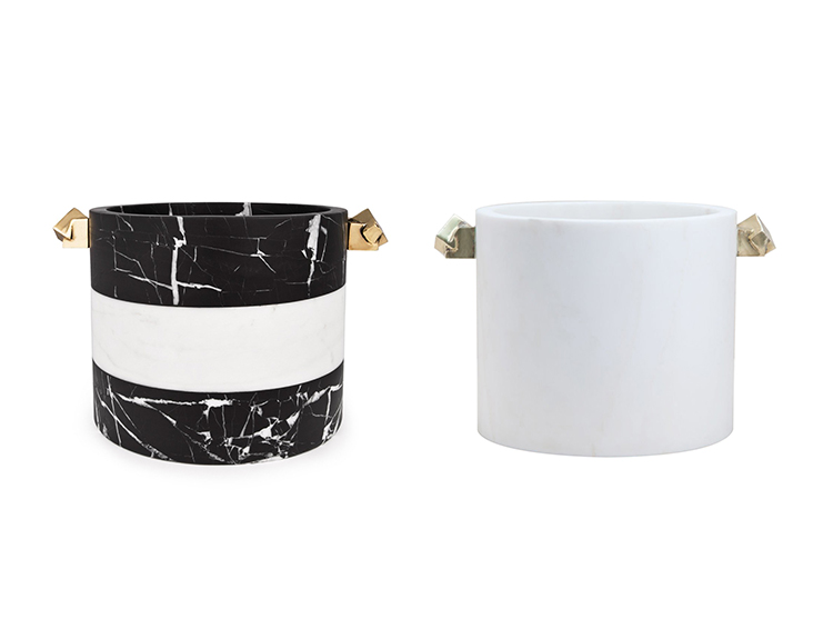 拥有令人惊叹的Acolyte冰桶,饰有天然青铜手柄,采用手工采摘的黄铁矿石制成。 Kelly对娱乐必需品的热爱激发了这款对比鲜明的黑色和白色冰桶,由黑色马奎纳和白色卡拉卡塔大理石手工雕刻而成。