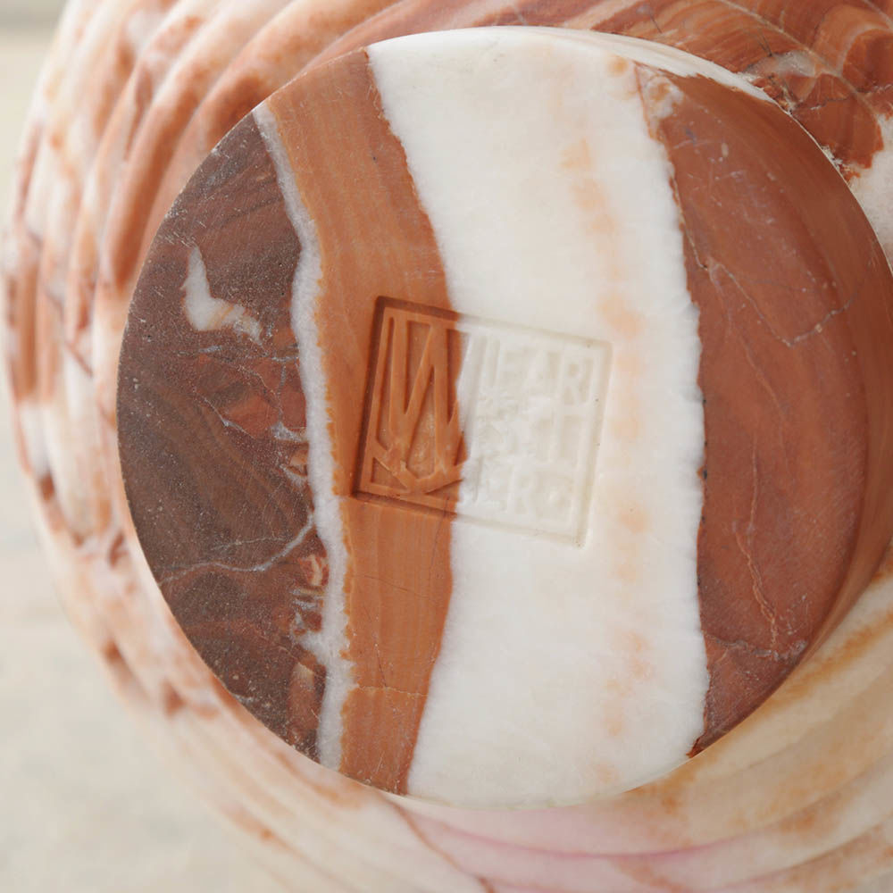 这款宽大比例的香槟碗采用坚固的大理石手工雕刻而成,并饰有柔软的罗纹外观。 其罗纹外观为碗提供了罕见的精致,大理石的优雅将与您的家居相得益彰。 每件作品都是独一无二的材料,旨在适应任何数量的娱乐功能和场合。 香槟酒杯可容纳冰块,最多可装四瓶香槟,食物安全。 大理石是一种天然材料,因此可以发生标记和着色的变化,使每个碗成为独一无二的。