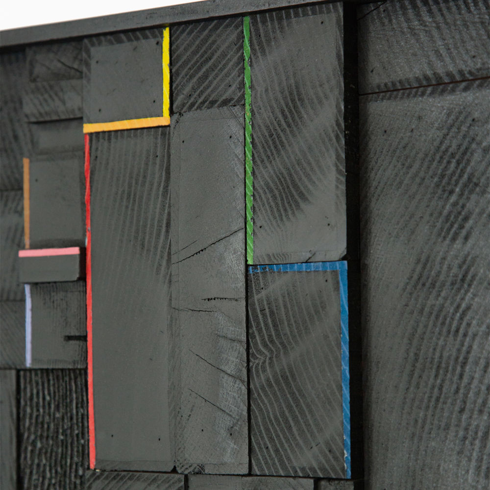 这款限量版艺术品名为Black Spectrum,由再生木材组装而成。 具有不同纹理图案的木材层创建了一个几何平面,详细描绘了最小的手绘线条。