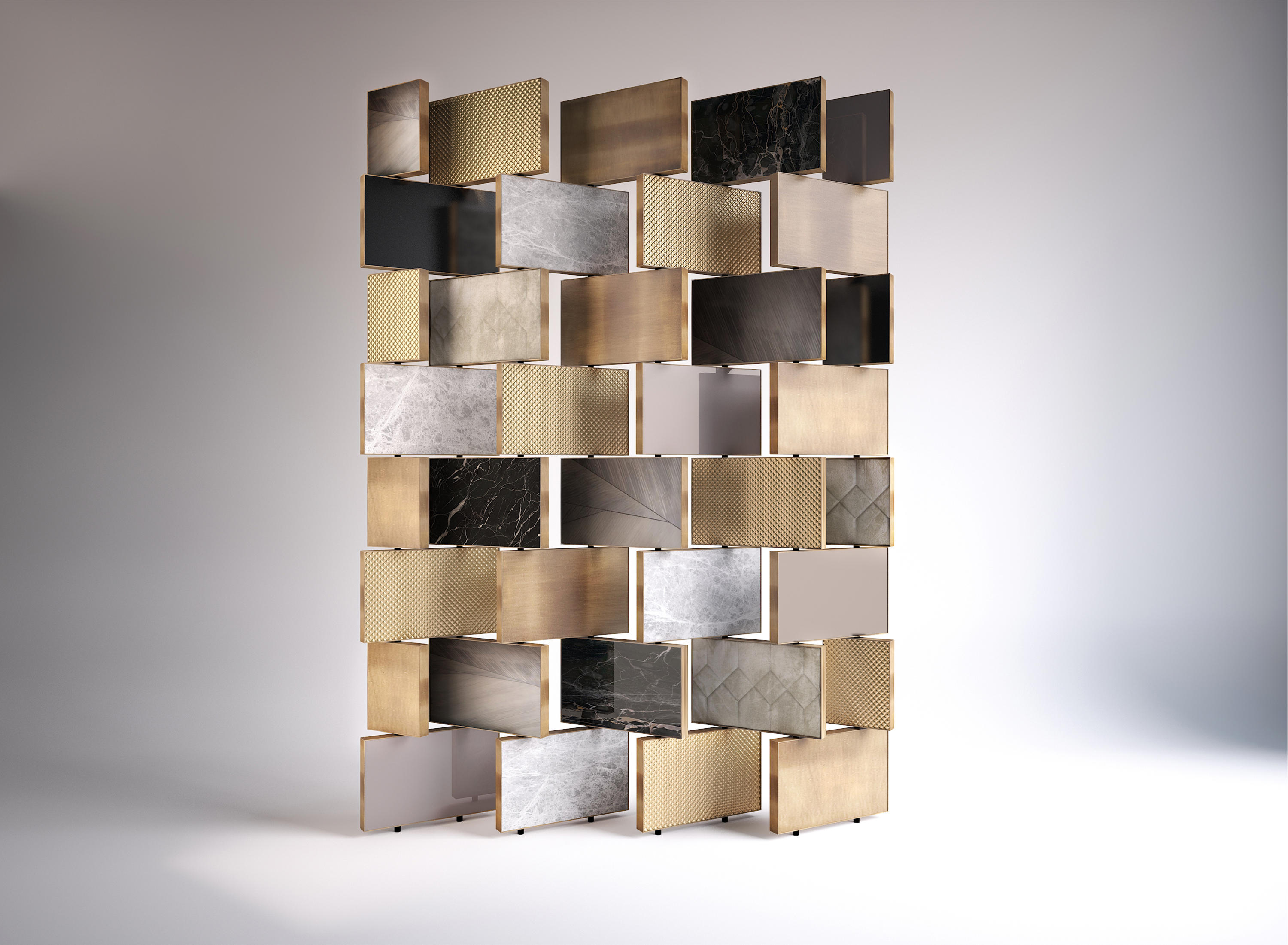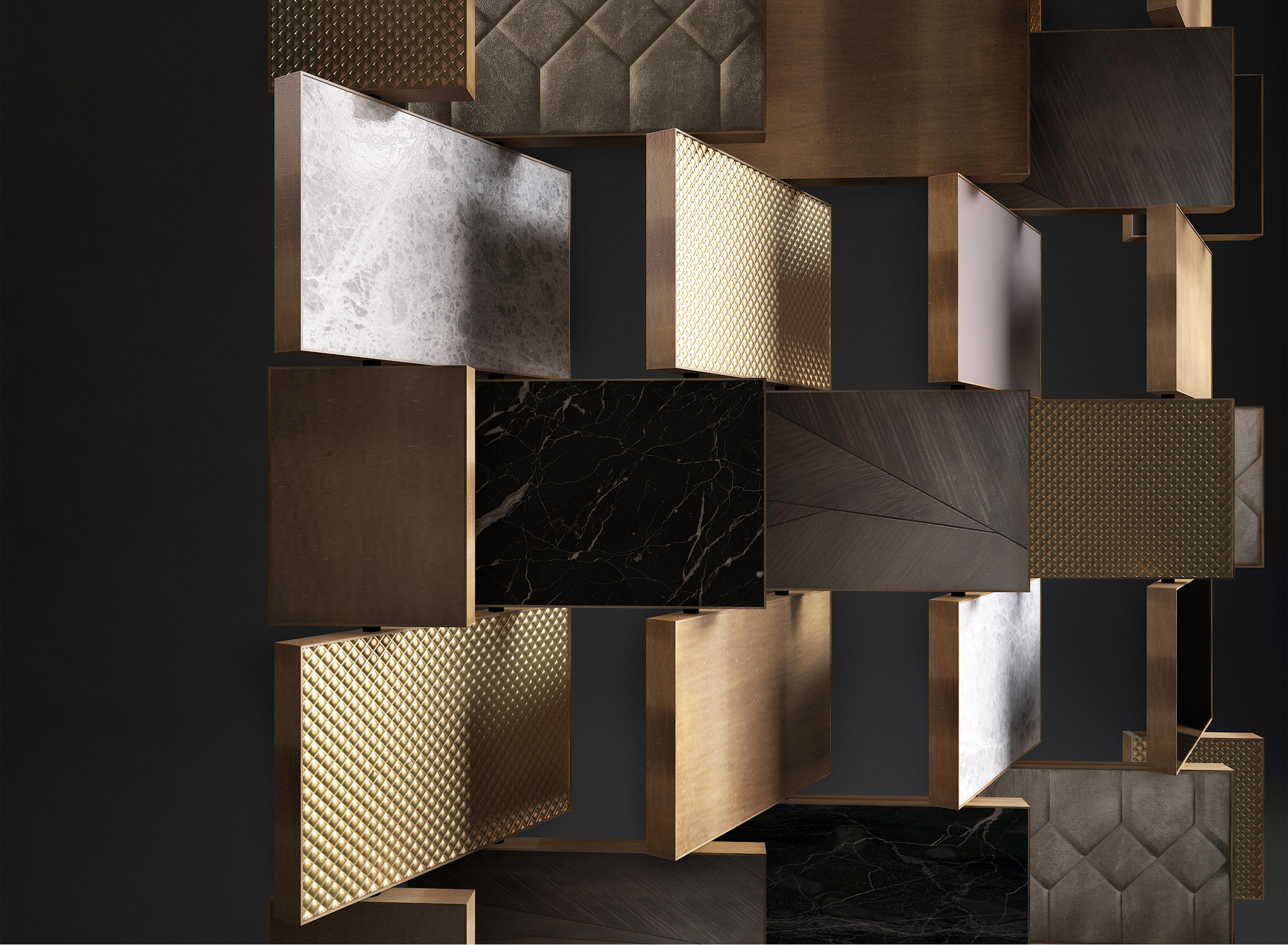 大理石、黄铜、石头、木头都是珍贵的镶嵌镶嵌物,揭开它神秘的面纱。帝国的屏幕展示了它强调材料价值的三维空间。石头上的雕刻,大理石光滑的表面,金属的滚花,木材的许多细微之处,与眼睛和触摸的交替和对比,给空间的装饰和空间的补充提供了绝对的区别。