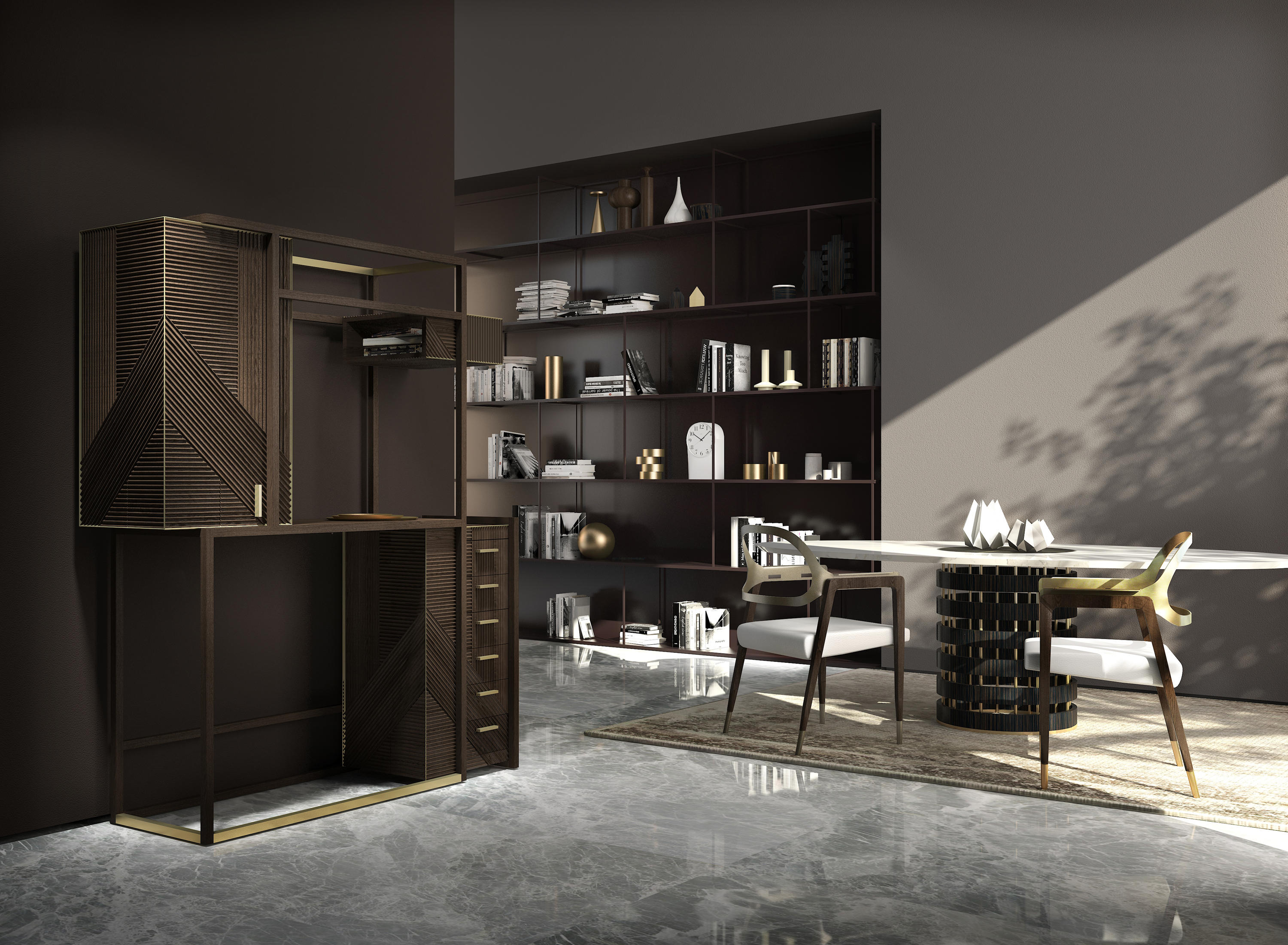 凭借其功能性设计,这款灵活的复古风格橱柜营造出简约的几何形状,并在完整空间和空间之间实现完美平衡 典型的表面处理采用交织的橡木编织,手工打磨和涂漆,具有极佳的视觉冲击力。