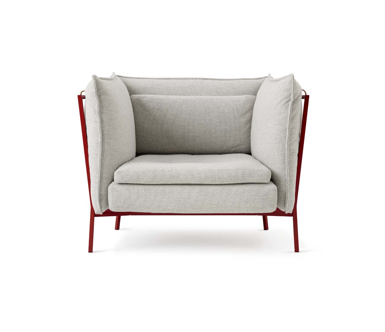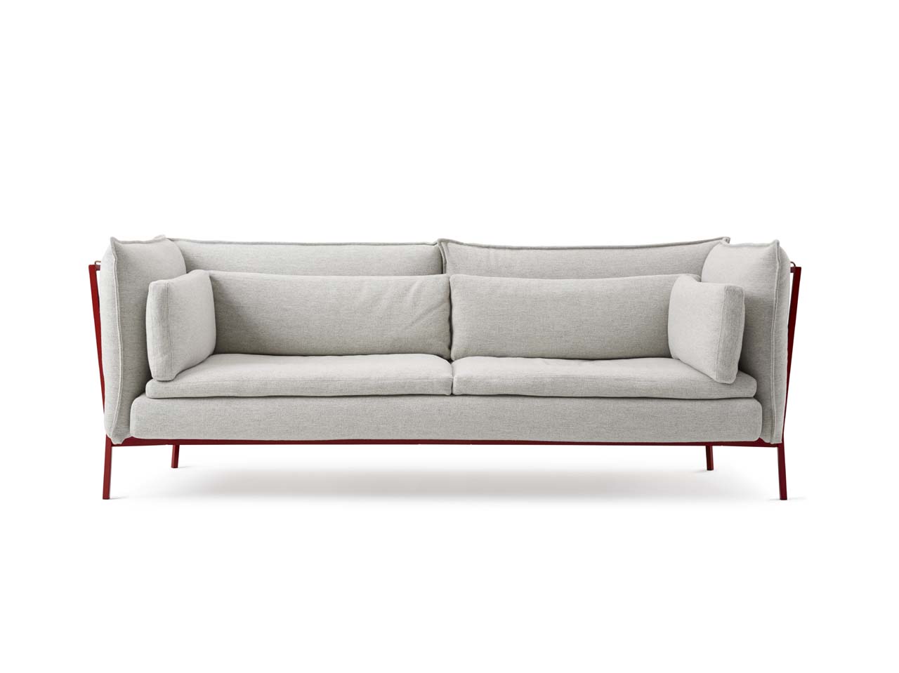 Basket 011沙发由哑光涂漆金属结构支撑,白色,红色,灰色或黑色。 可拆卸的覆盖物可从该系列的面料和皮革中获得; 垫套也可以结合不同的面料和皮革制成。