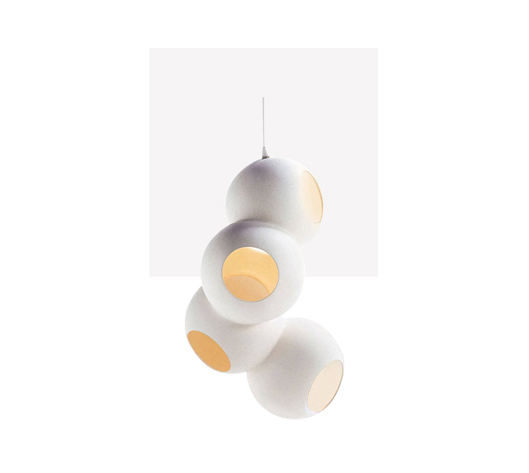 陶瓷灯由Marre Moerel设计,包含6个不同尺寸的球形烛台。 陶瓷灯由象牙色釉面陶瓷制成; 内部烛台由光滑的白色陶瓷制成。