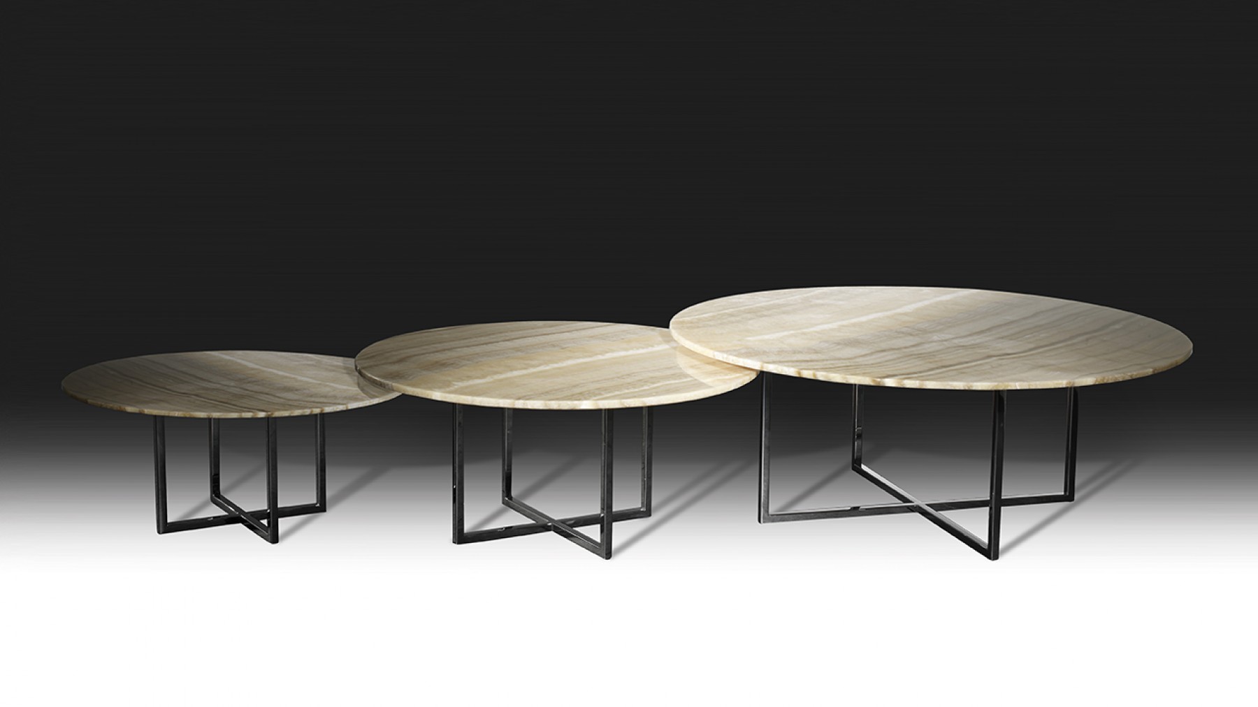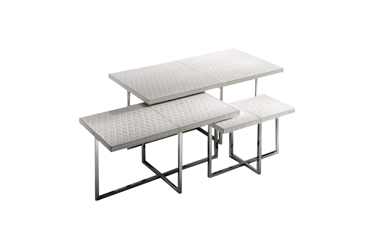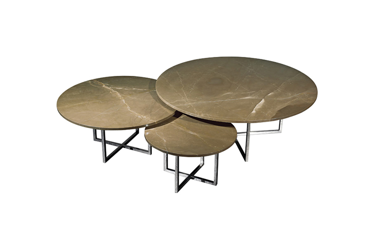 Olimpic, a contemporary coffee table set is available in 4 shapes; round, square, rectangle, oval. The Olimpic also offers 4 finishes; liquid bronze, chameleon bronze, onyx bronze and gris pulpis marble, each of them have different touches. All items can be paired perfectly.