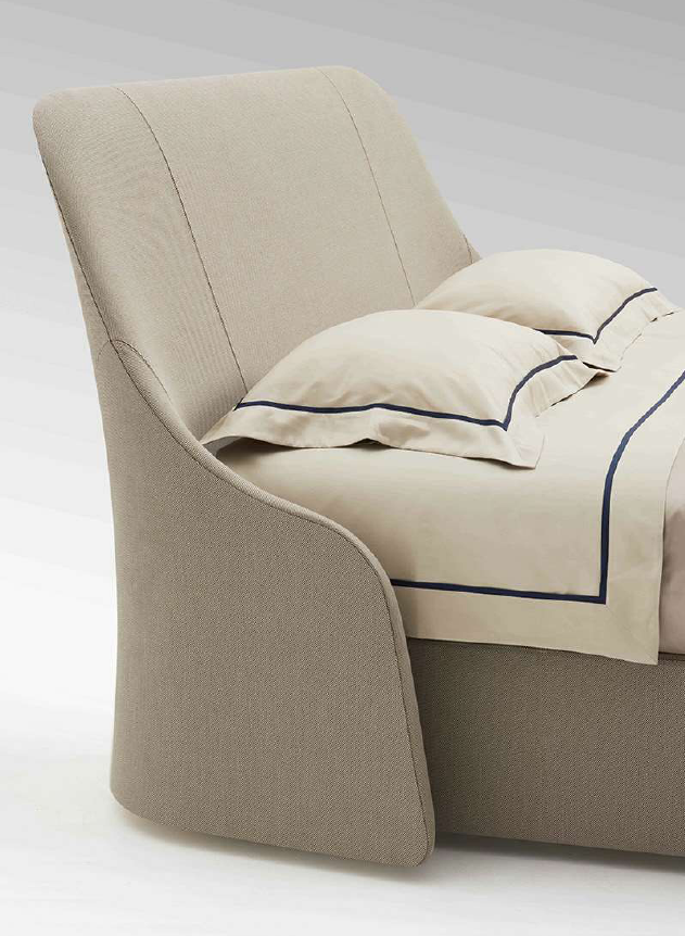removable fabric or leather. Base cover: loose fabric, not removable leather cover. Leather insert upon request along the headboard and on the base