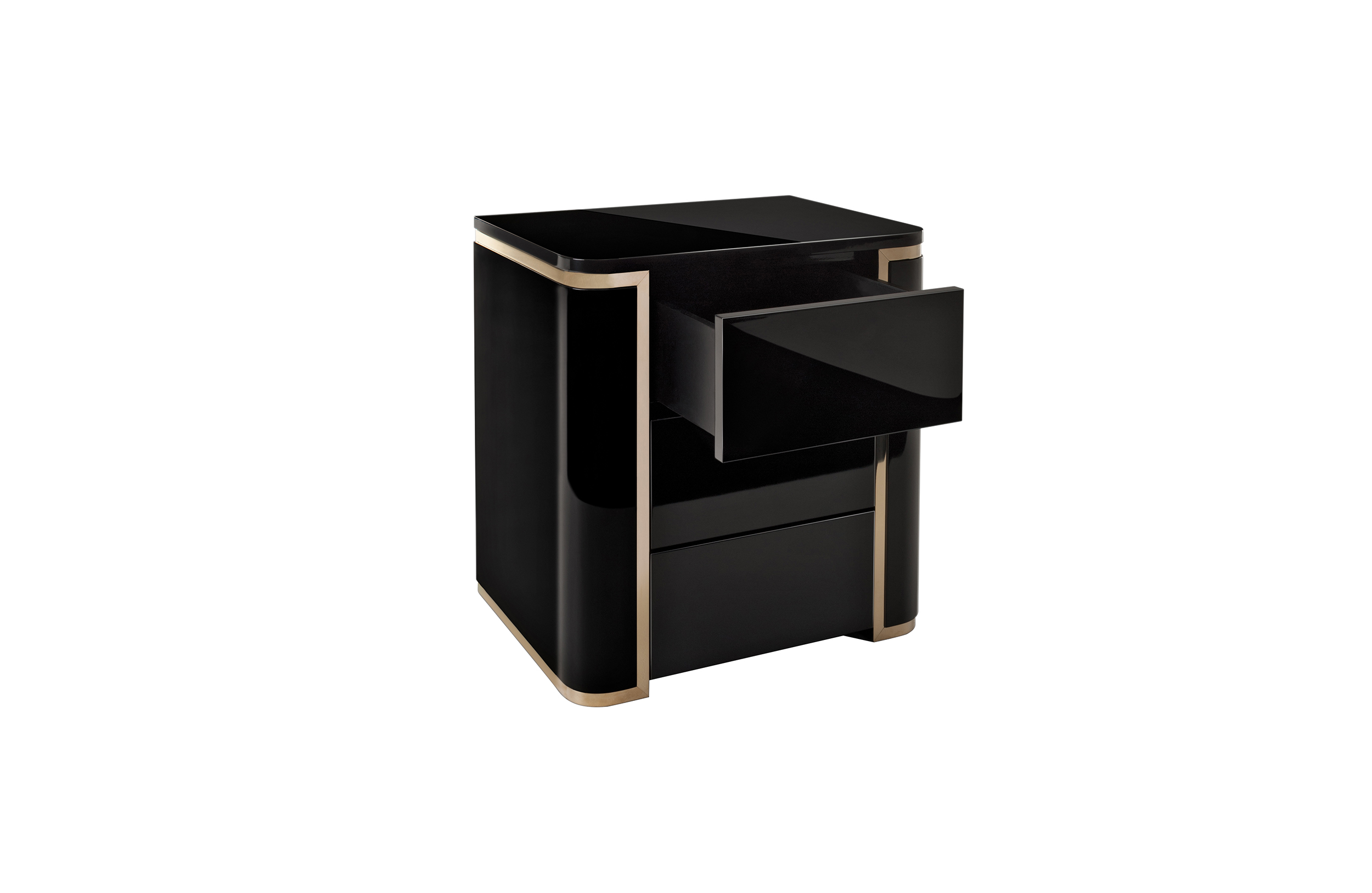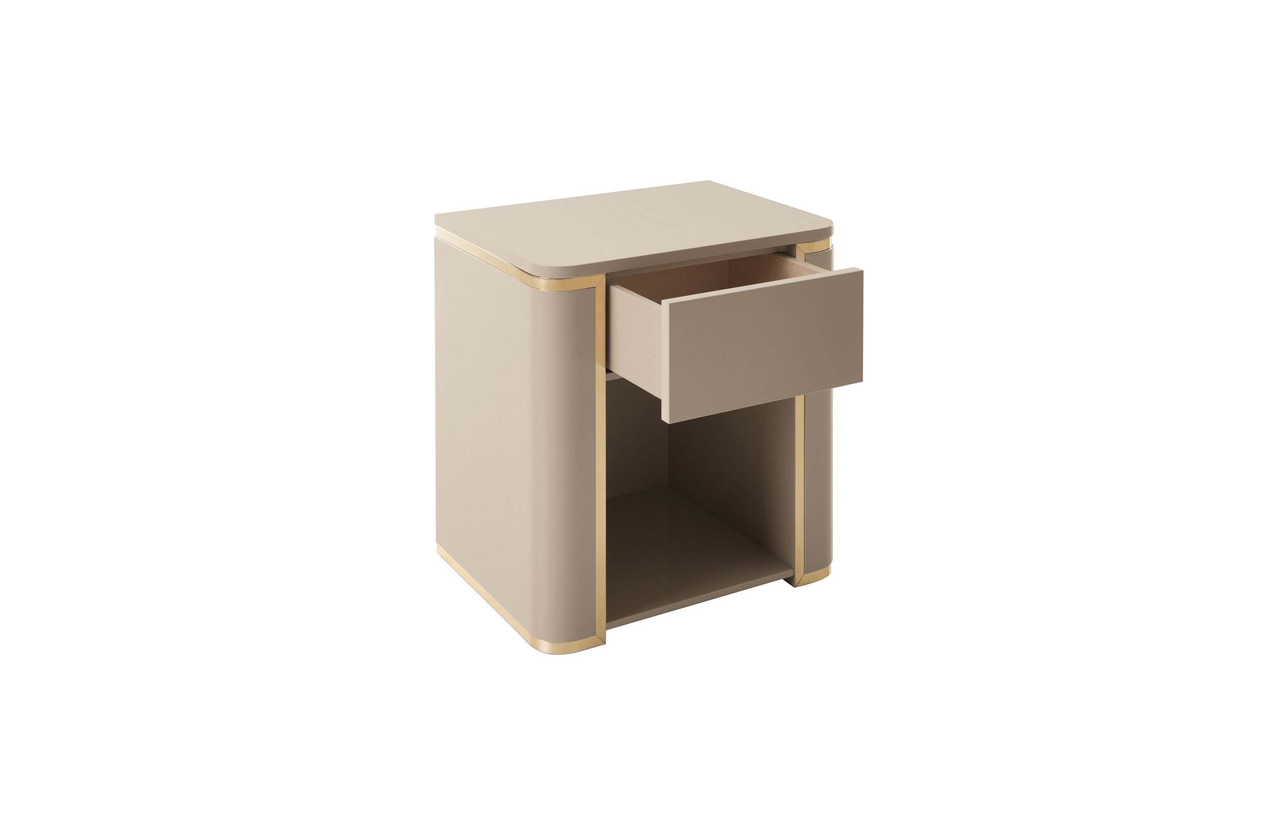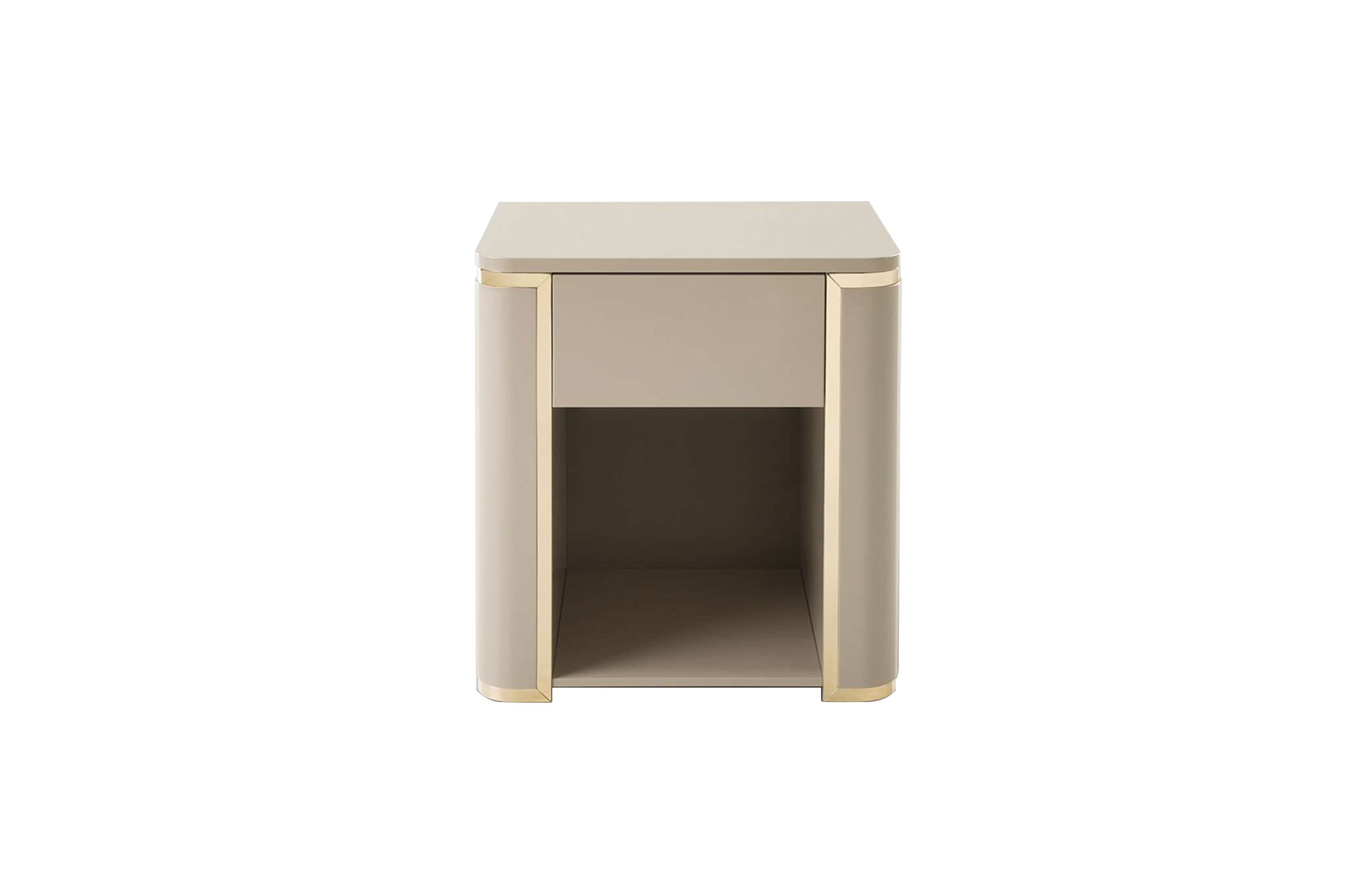 Bedside table with one drawer and glossy lacquered open shelving