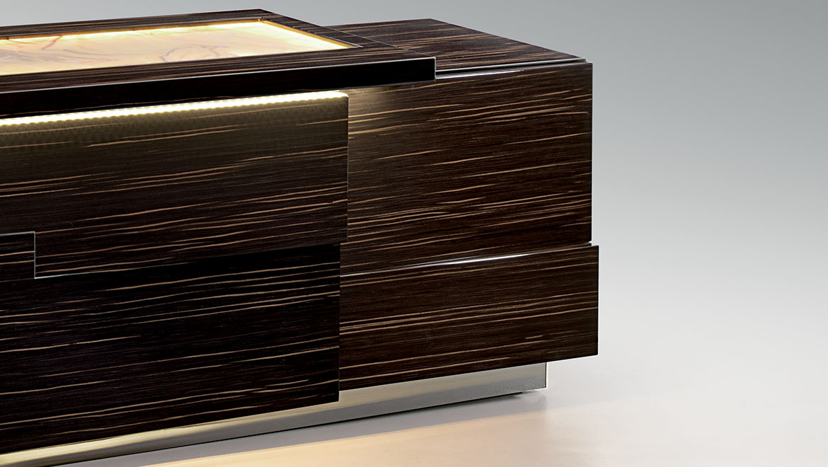 DRAWERS Version with nr.2 internal drawers (on the left side) with coordinated frontal cover. Inner drawers matt lacquered and covered in microfibre