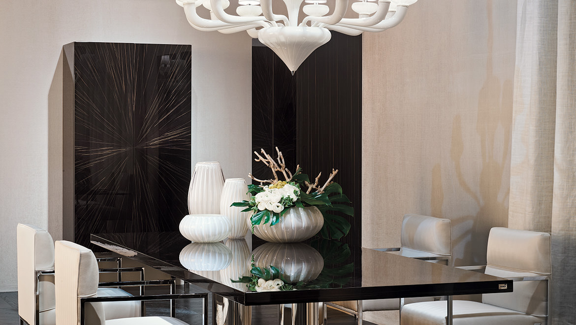 OPTIONAL Dedalo 2 with internal drawer veneered Ebony Macassar, inner in microfibre