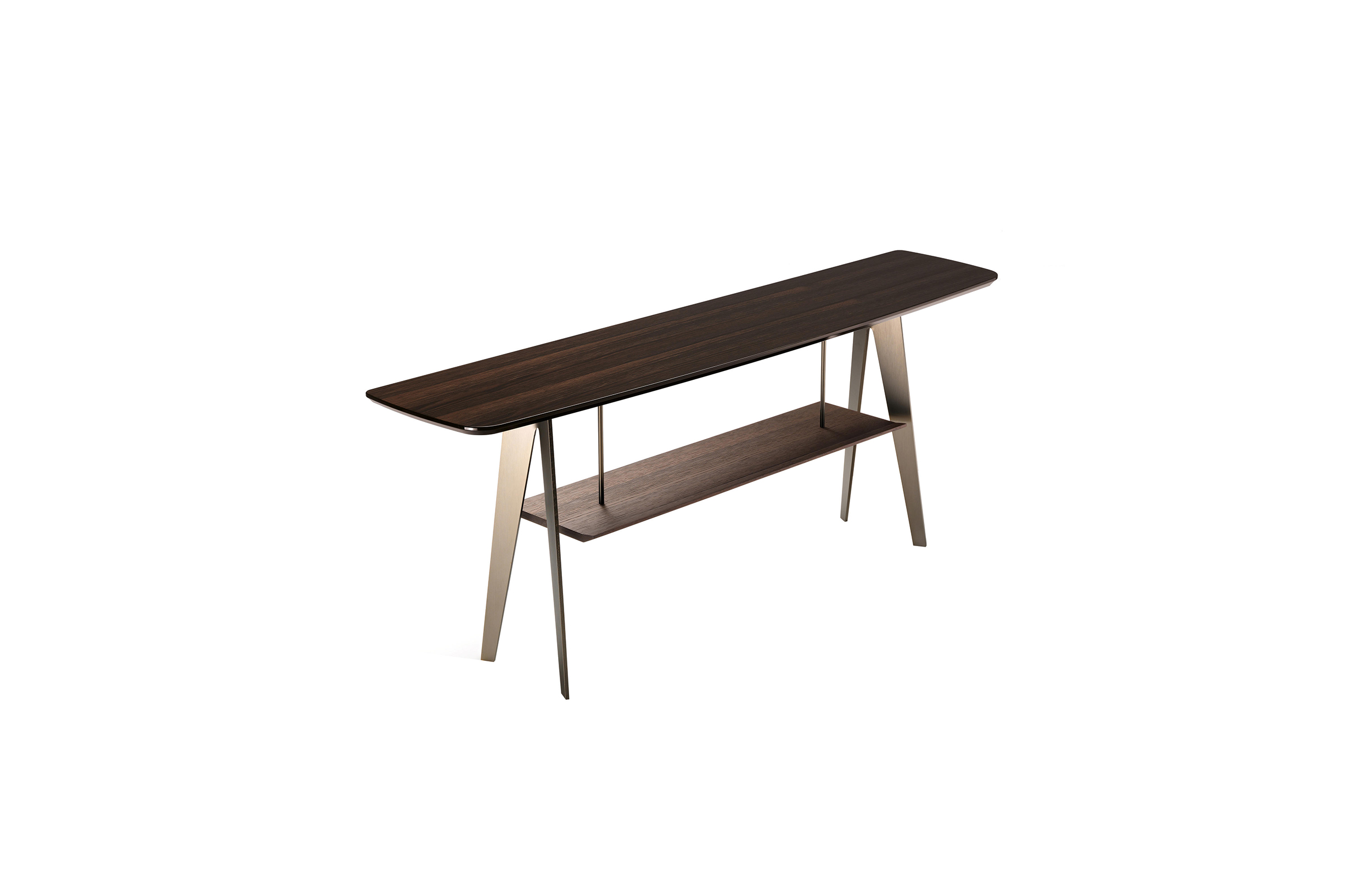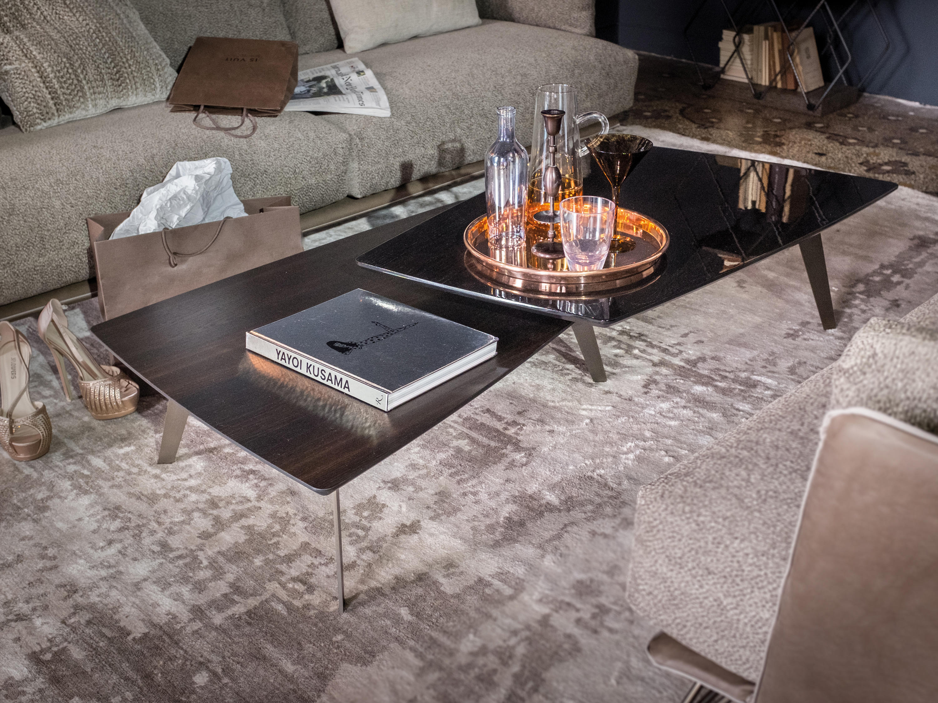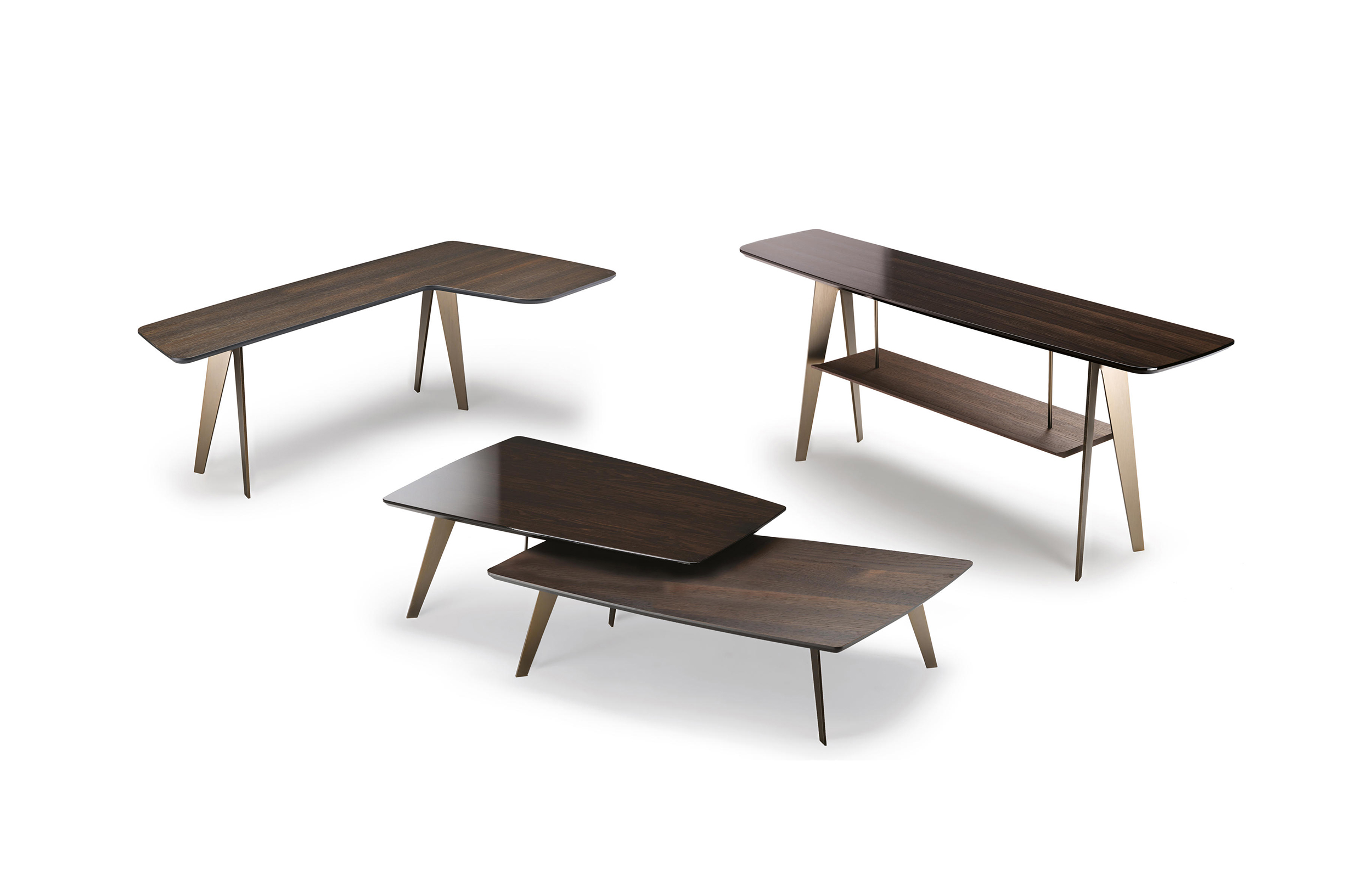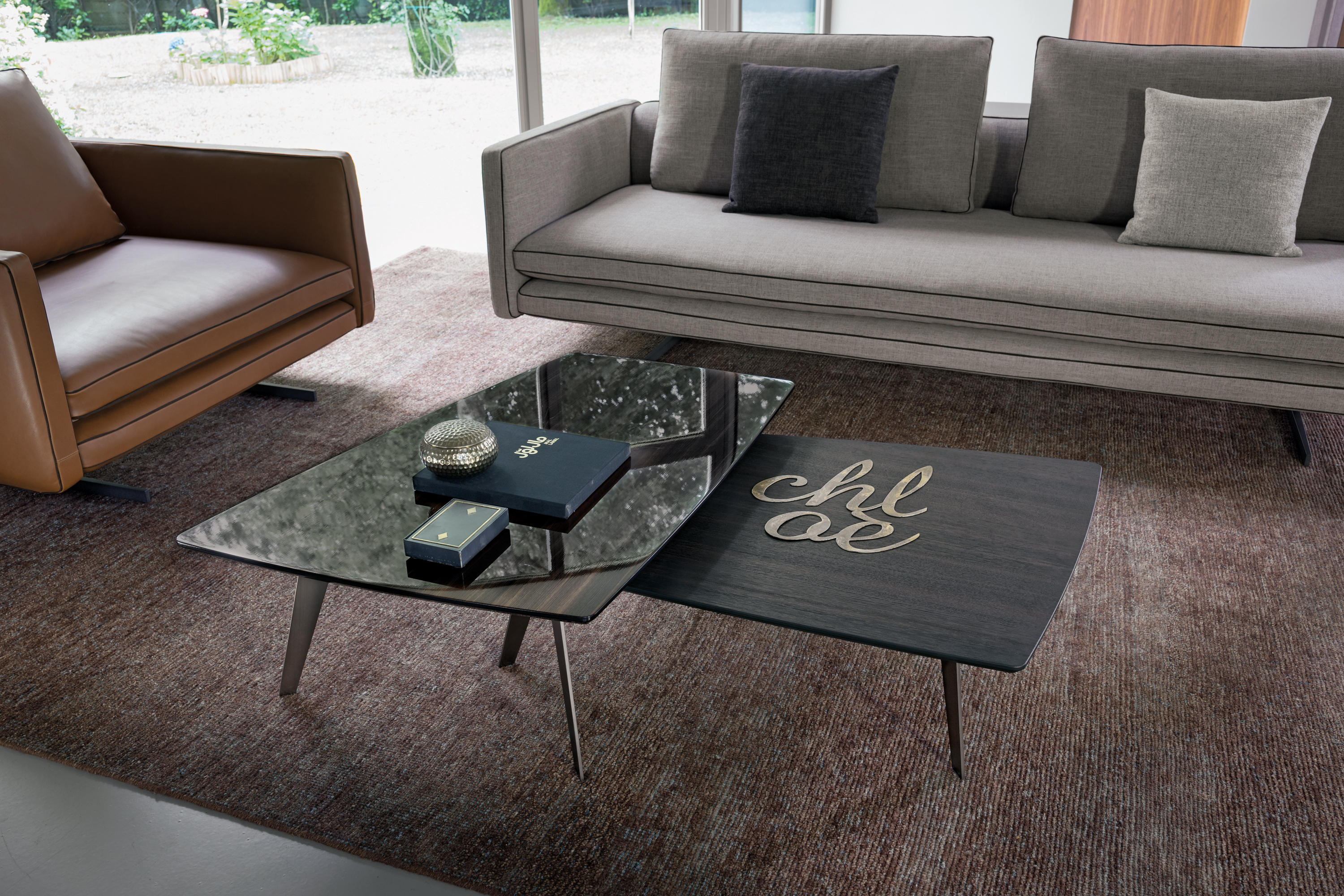 现代和都市的灵感存在于市中心,集合包括咖啡桌、边桌和控制台。这是一种设计配件,在莫卡橡木或苏库皮拉的薄木上,由一种由微小的金属结构支撑,这种金属结构是由微米的棕色或钛金属制成的。咖啡桌的两个顶部可以旋转180度,以提供更实用的用途。