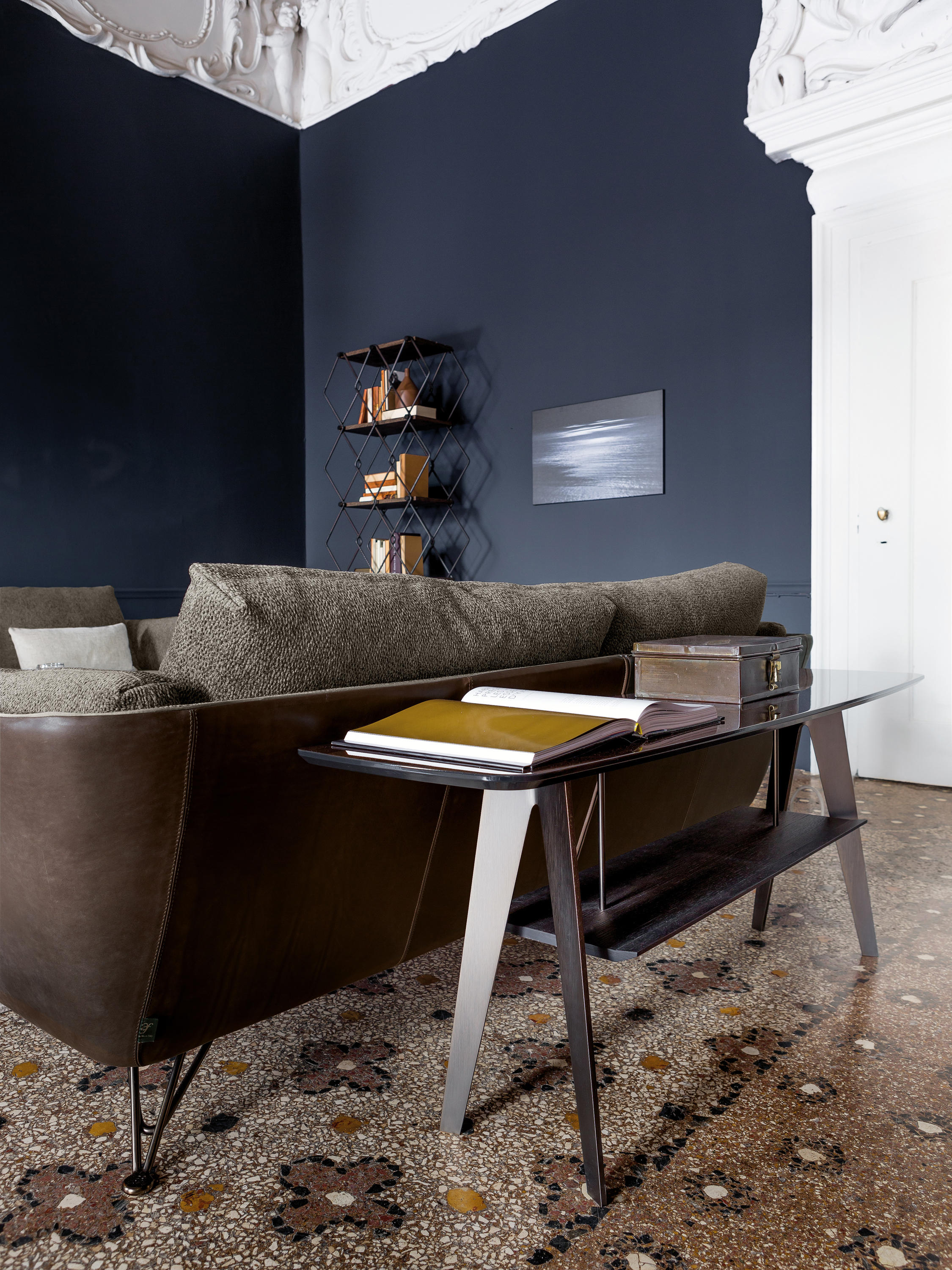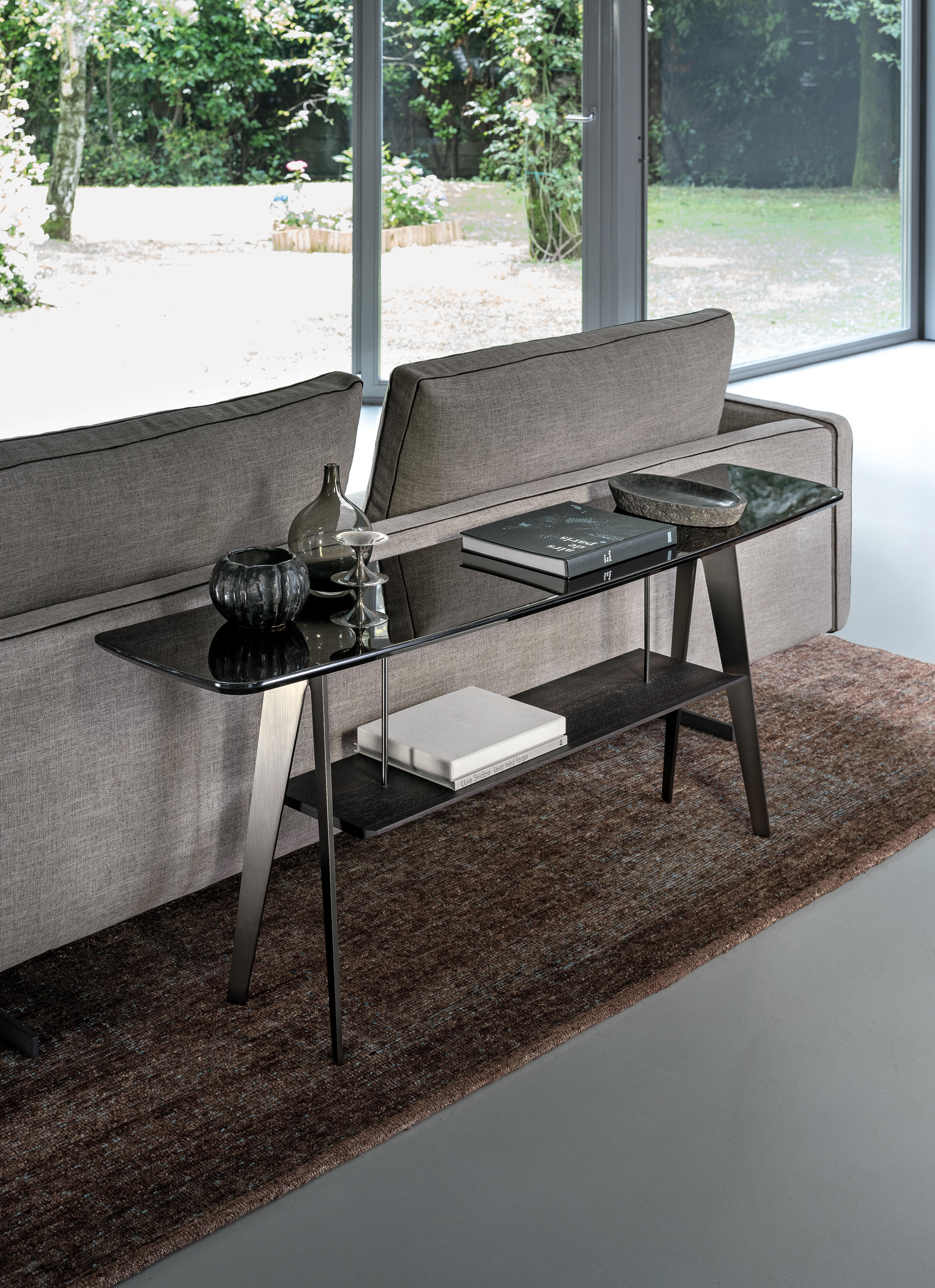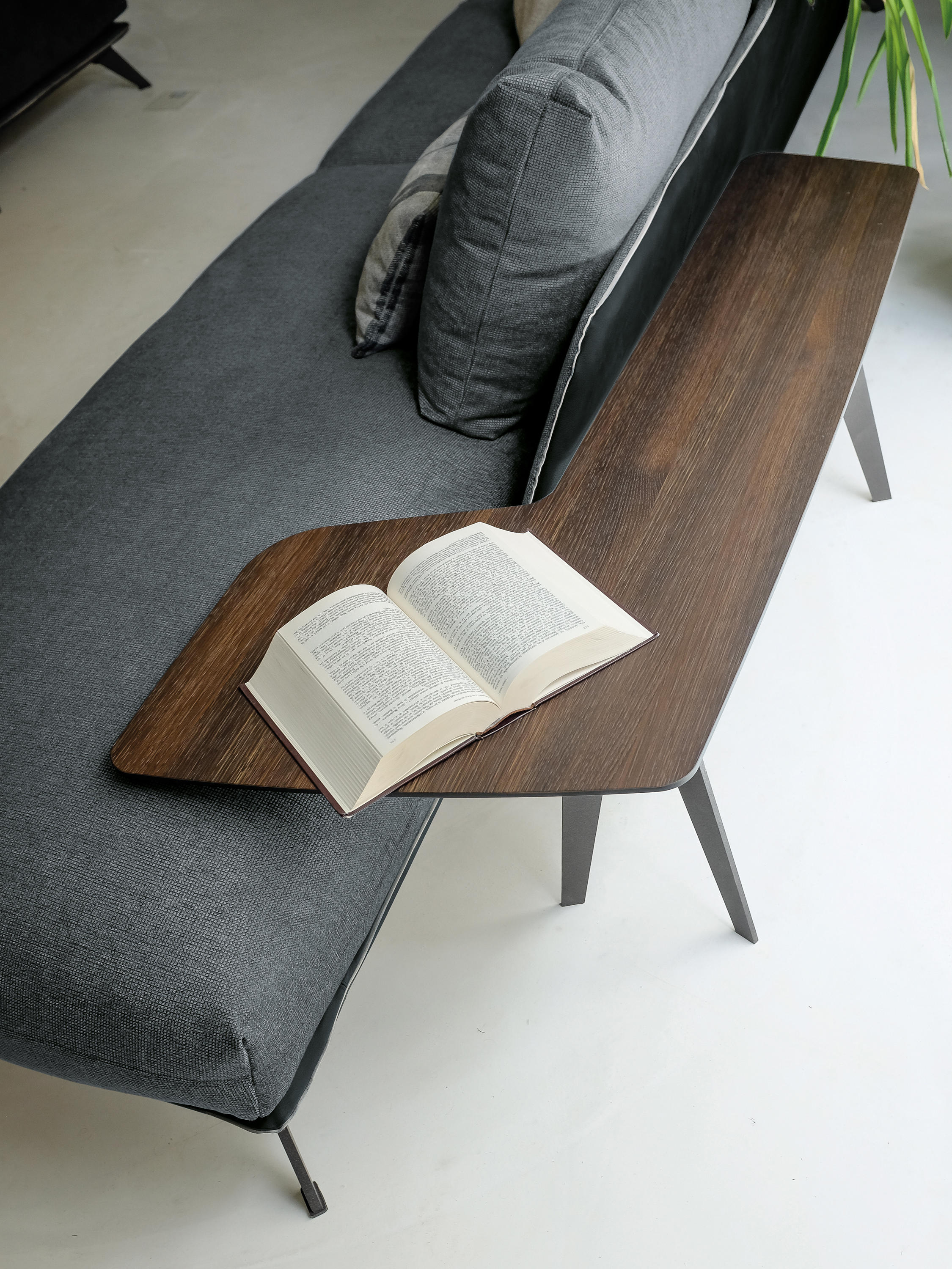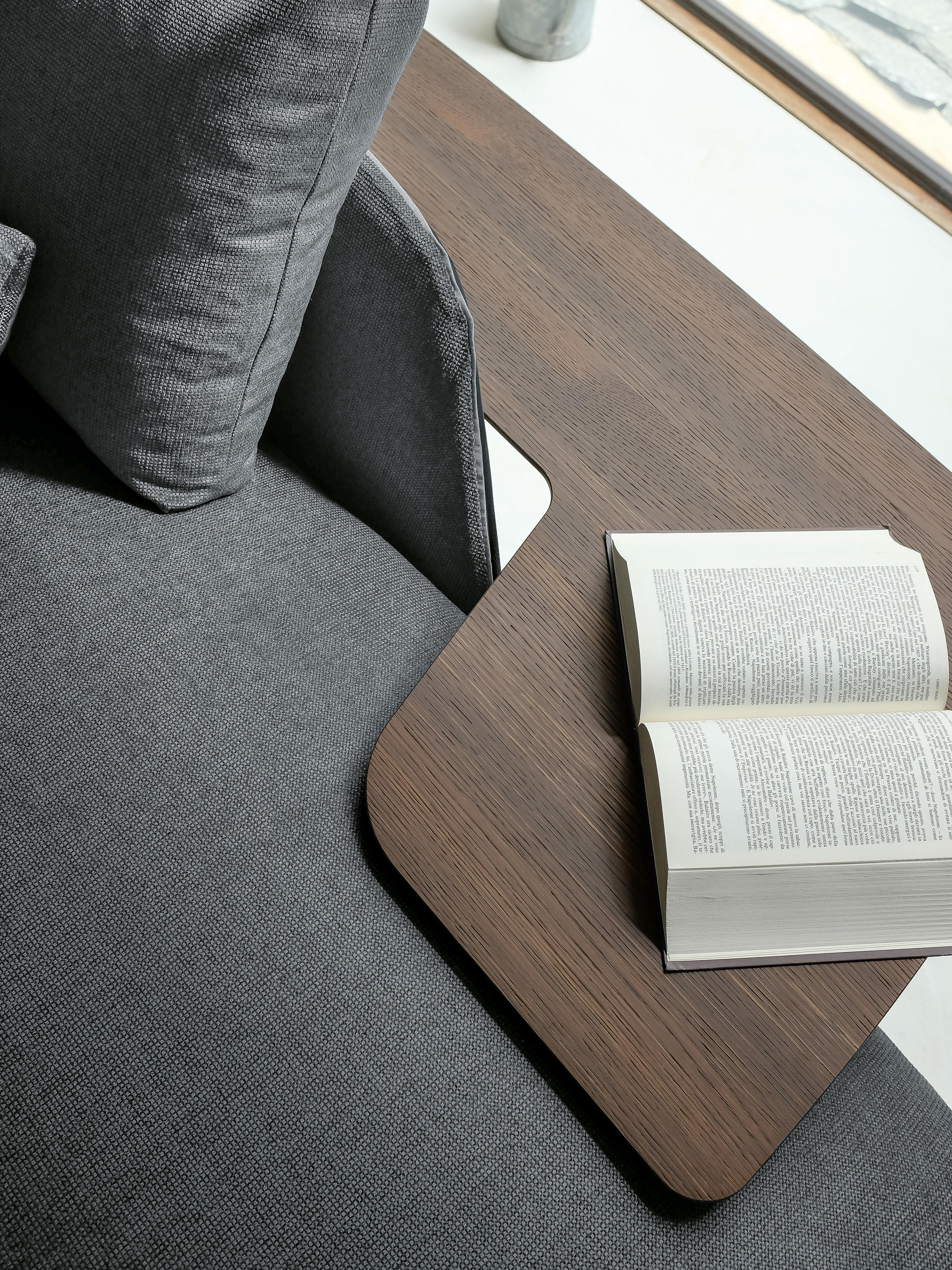 现代和都市的灵感存在于市中心,集合包括咖啡桌、边桌和控制台。这是一种设计配件,在莫卡橡木或苏库皮拉的薄木上,由一种由微小的金属结构支撑,这种金属结构是由微米的棕色或钛金属制成的。咖啡桌的两个顶部可以旋转180度,以提供更实用的用途。