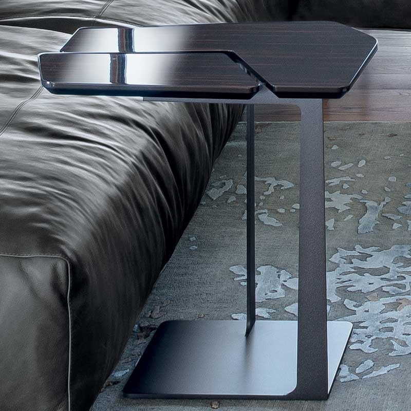 纳尔逊咖啡桌的主要特点是它的桌面。桌面被一个很深的缝隙分开但它们是由结构组成的。将木头和皮革等温暖的材料结合在一起组合成了不规则的几何形状的桌面。托斯卡纳传统的蔬菜鞣革是一种以多种颜色、独特香气和小瑕疵为特点的天然产物。