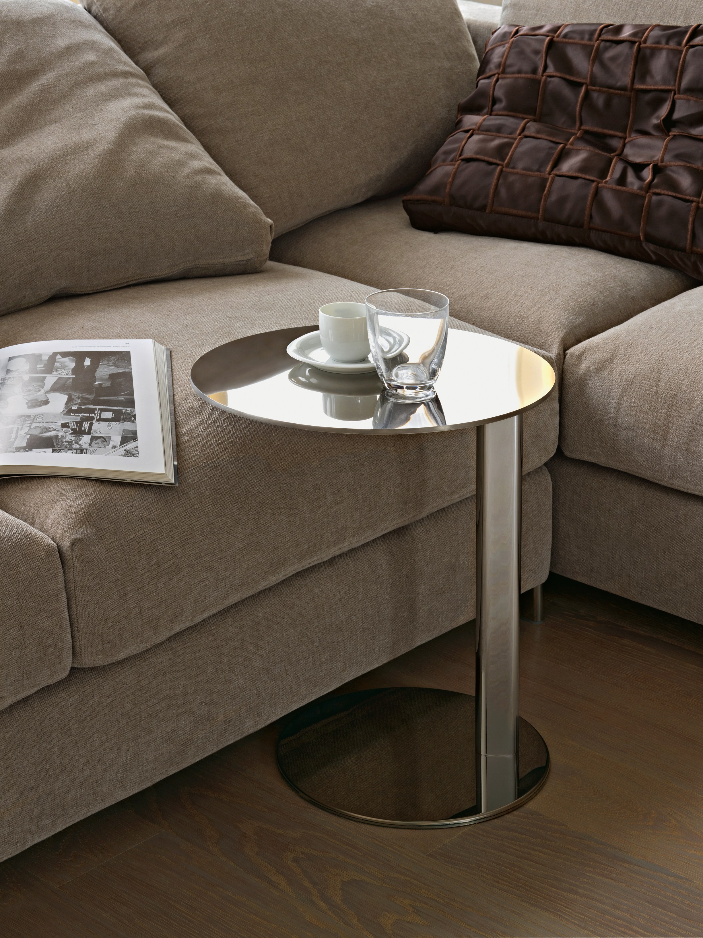 优雅的小茶几,由上下两个平行的不锈钢抛光圆盘和中间连接用于连接和支撑的镀铬金属脚组成。在Arketipo系列中,因为简单而精致的适用于各种类型沙发进行搭配。
