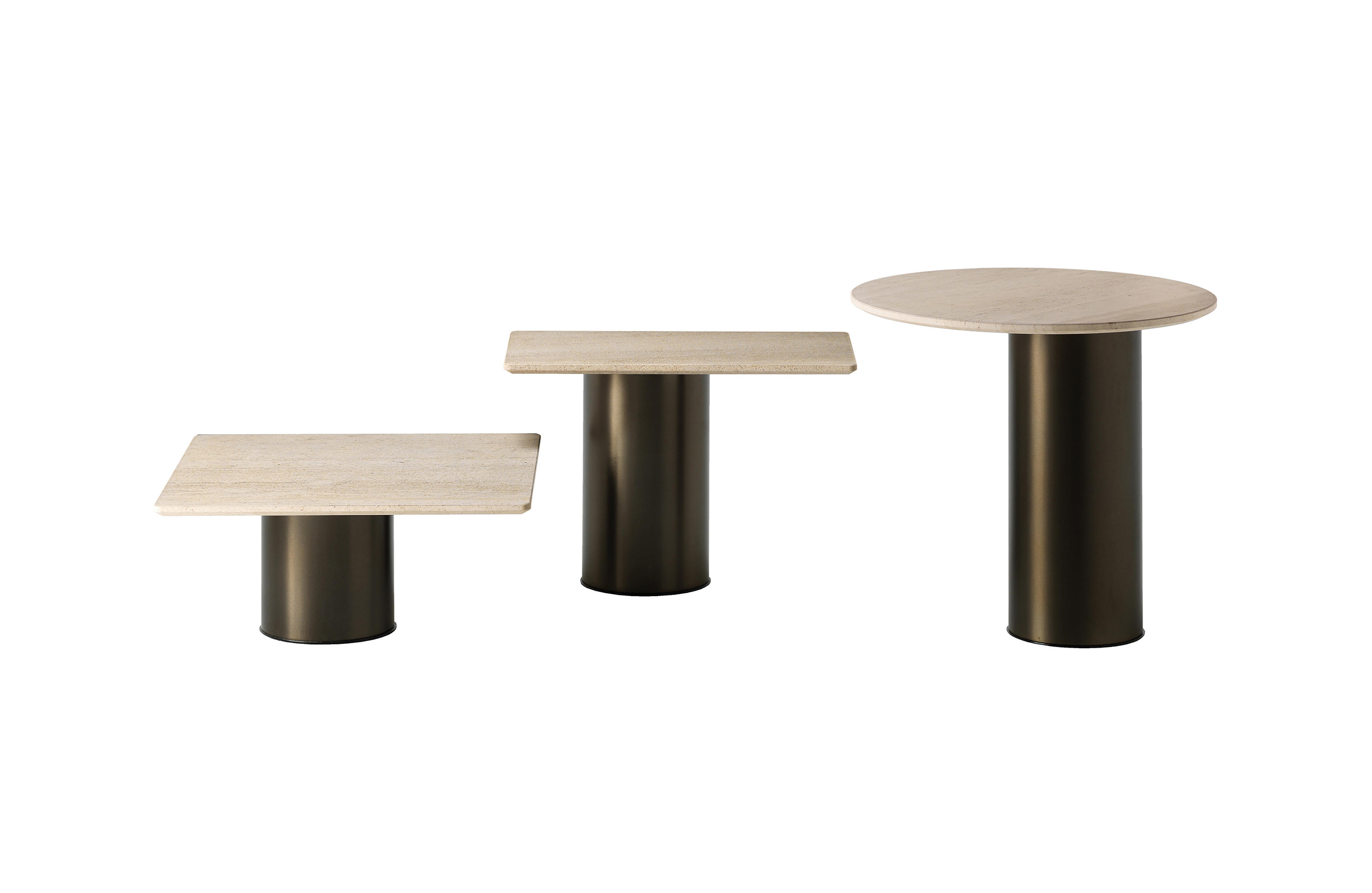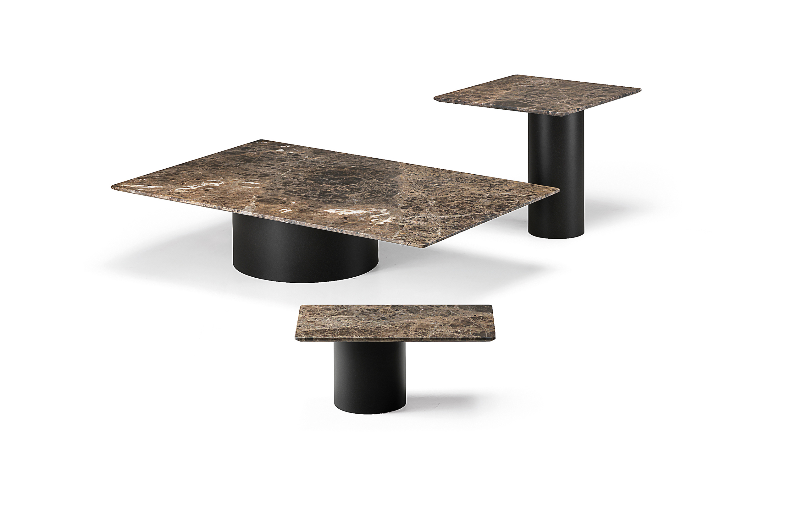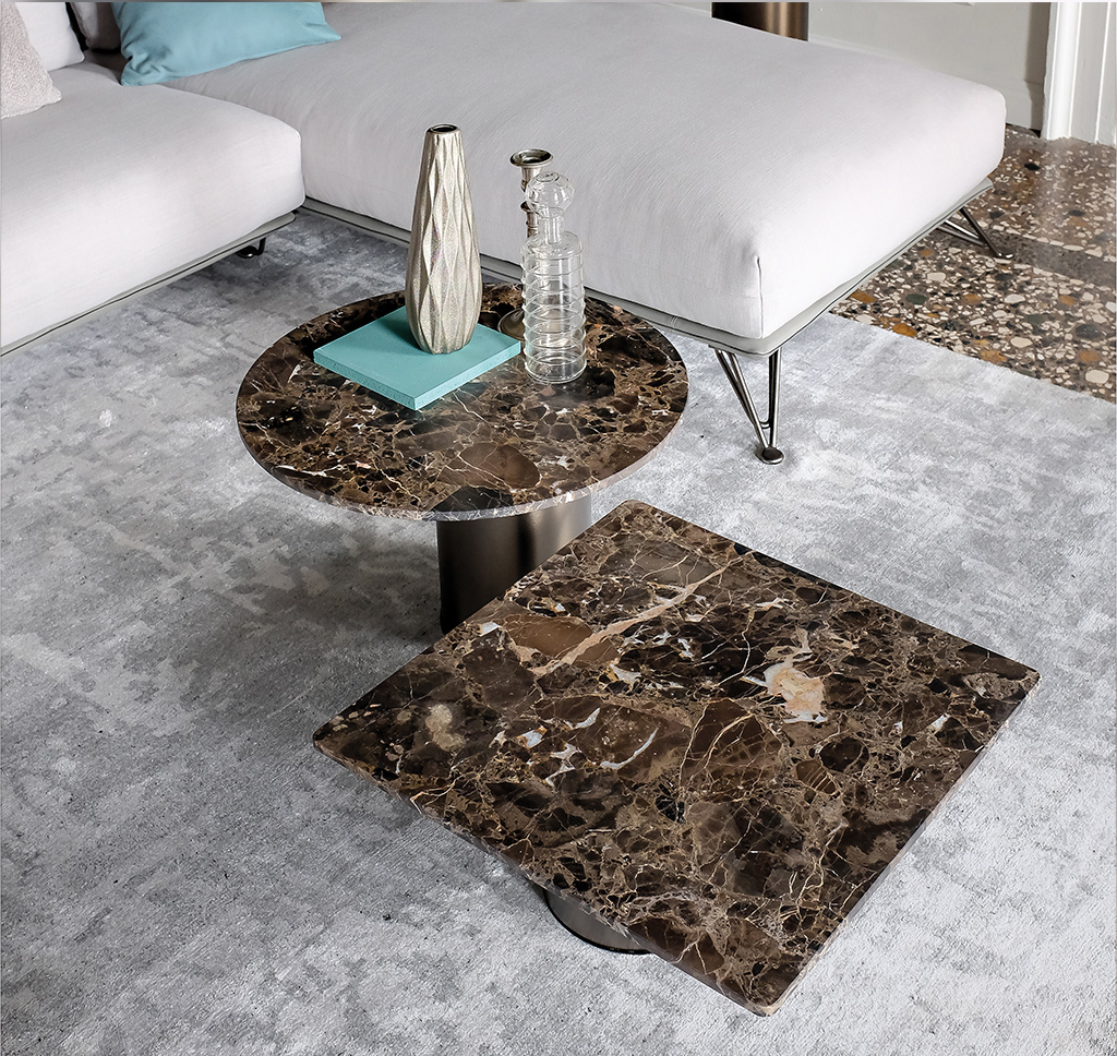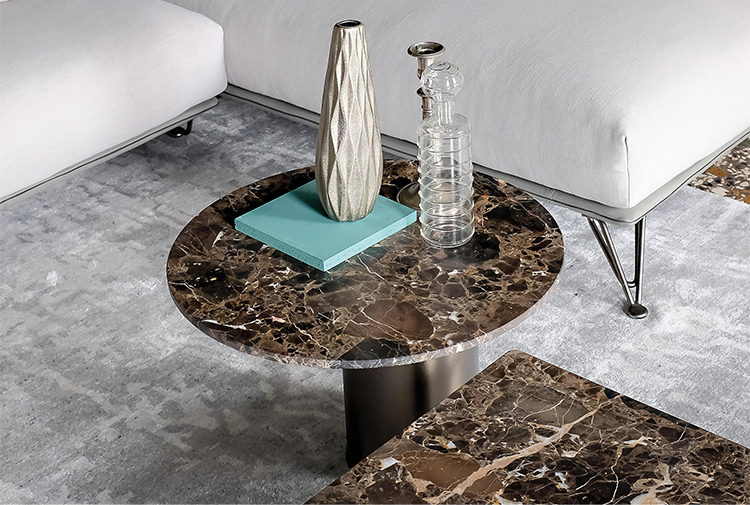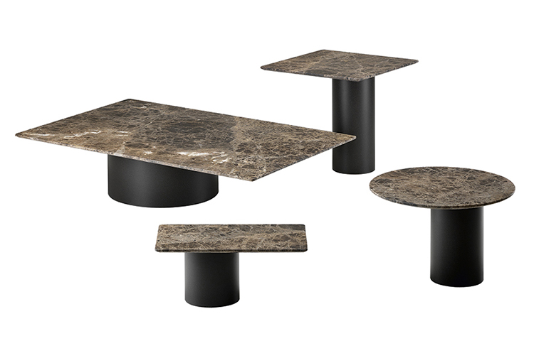 两种不同的材料结合在一个咖啡桌上。Petra咖啡桌被设计为可以当成单独的桌子或作为一套桌子进行使用。底座的设计是偏离桌面中心的,多款桌子因不同的高度搭配在一起创造了一个起伏的桌面效果。桌面有圆形和矩形可供用户进行选择。