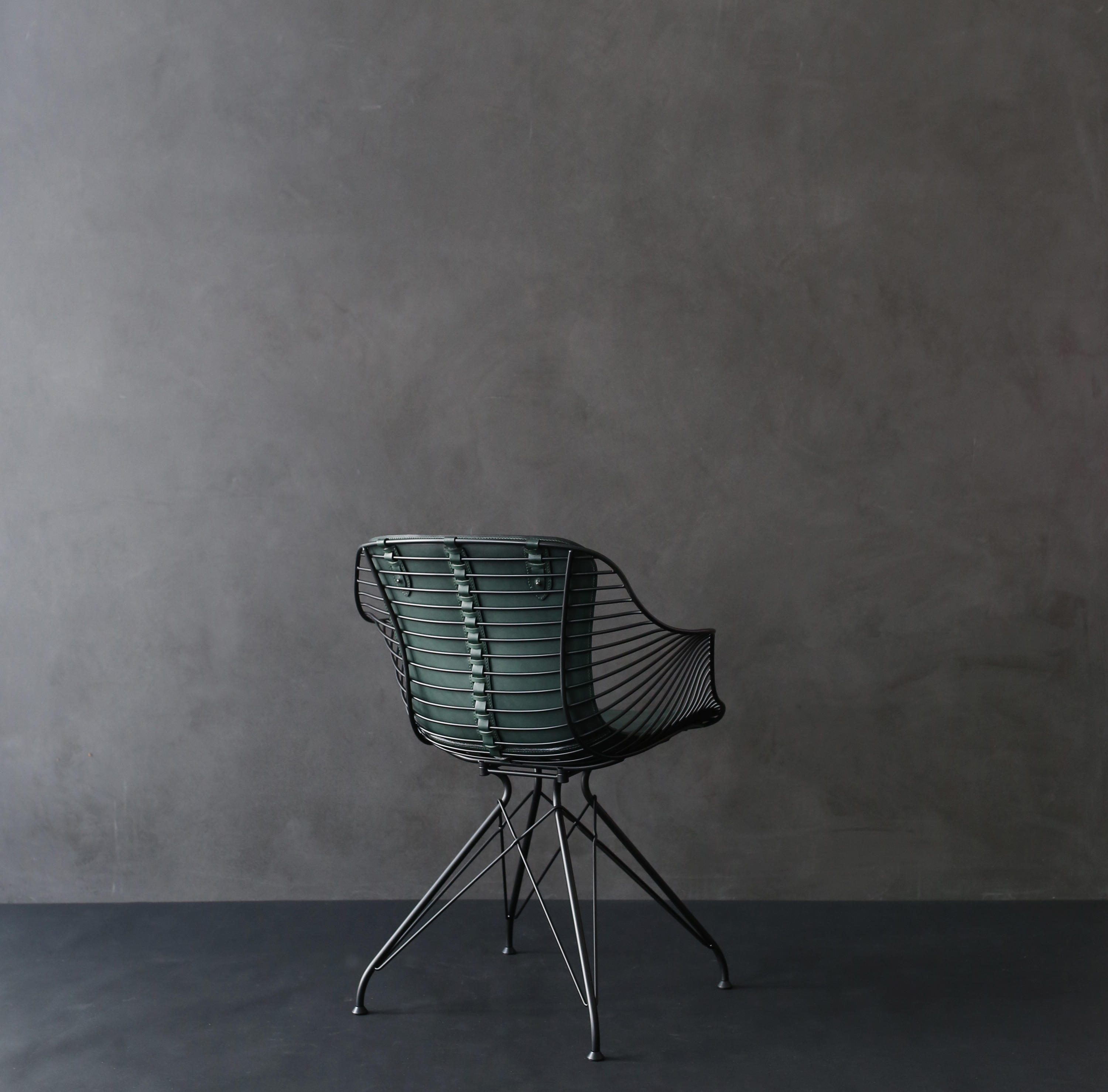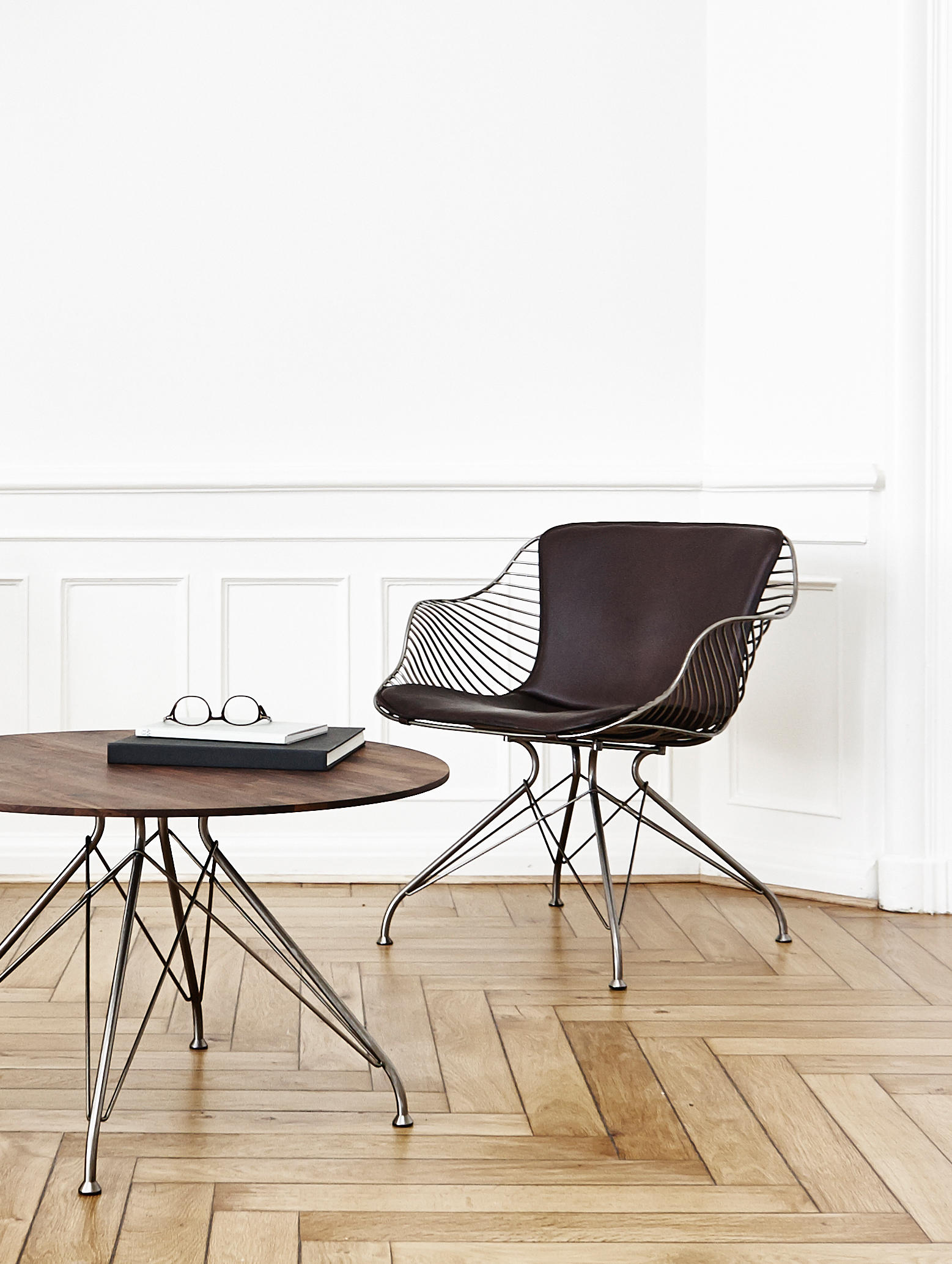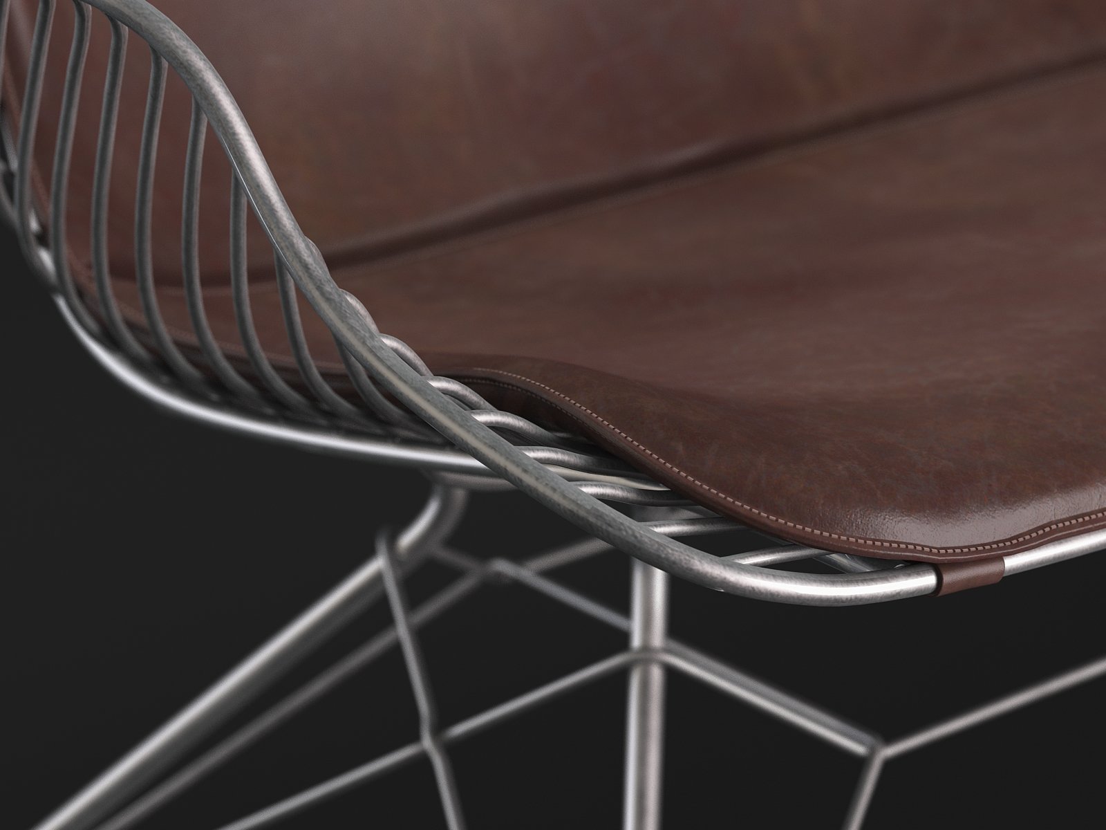 金属丝躺椅由Jasper Overgaard和Christian Dyrman设计。2014年设计的金属丝躺椅是一种更低、更宽、更平放的版本,与铁丝餐椅相比。